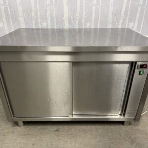 Müüa tööstuslik Electroluxi kuum / sooja kapp. Mõlemalt poolt 2 suure lükand uksega. Temperatuuri vahemik 0-110C. Digitaalne termostaat ja temperatuuri reguleerimine. Kapis ventilaatorid mis kiireti suudavad saavutada temperatuuri ja seda säilitada. Valmistatud täielikult roostevabast terasest 304 AISI. Töötasapinnal on helisummutava materjali kiht ja ülespööratud servad. Kapis sees 1 reguleeritava kõrgusega
