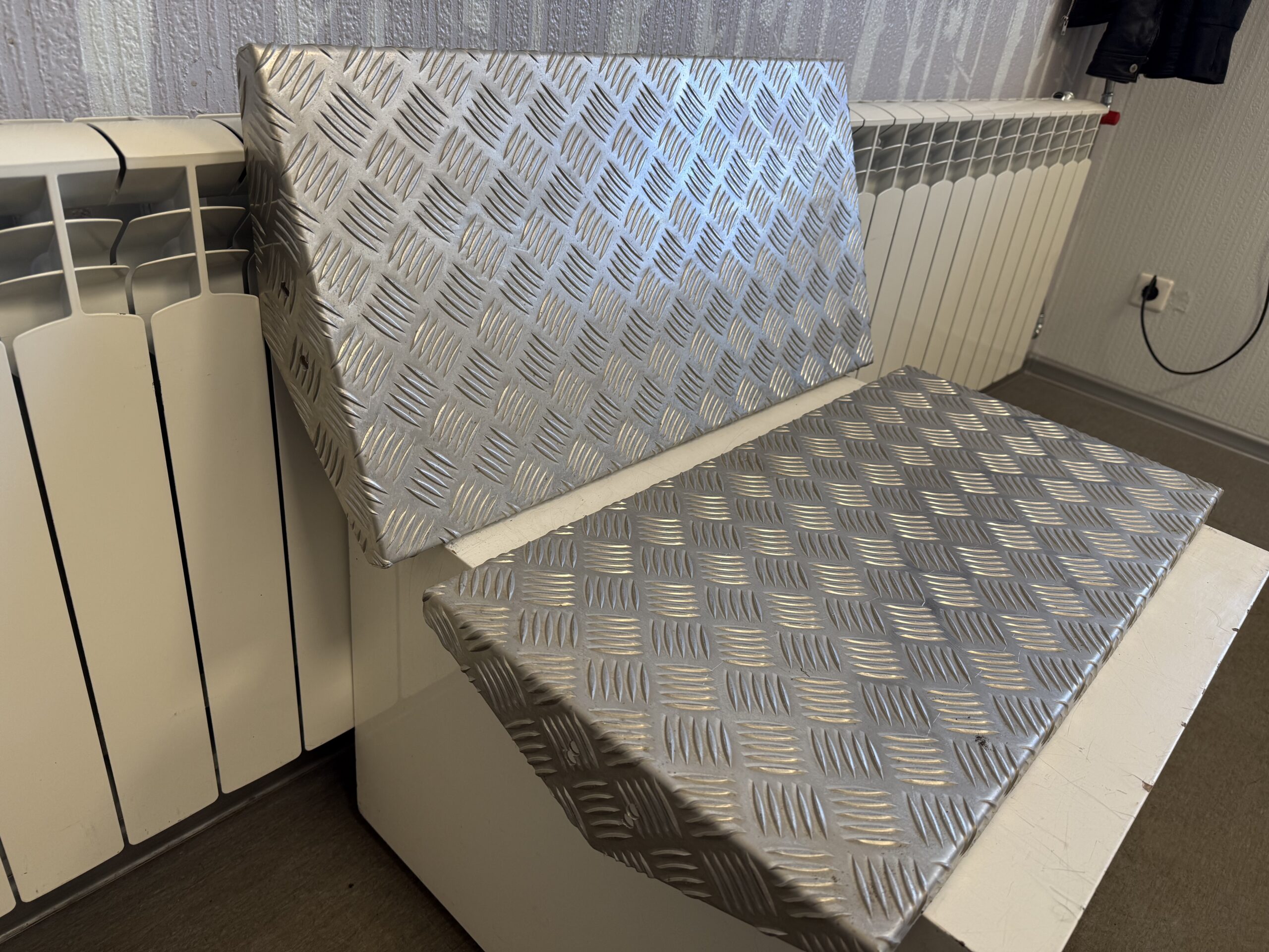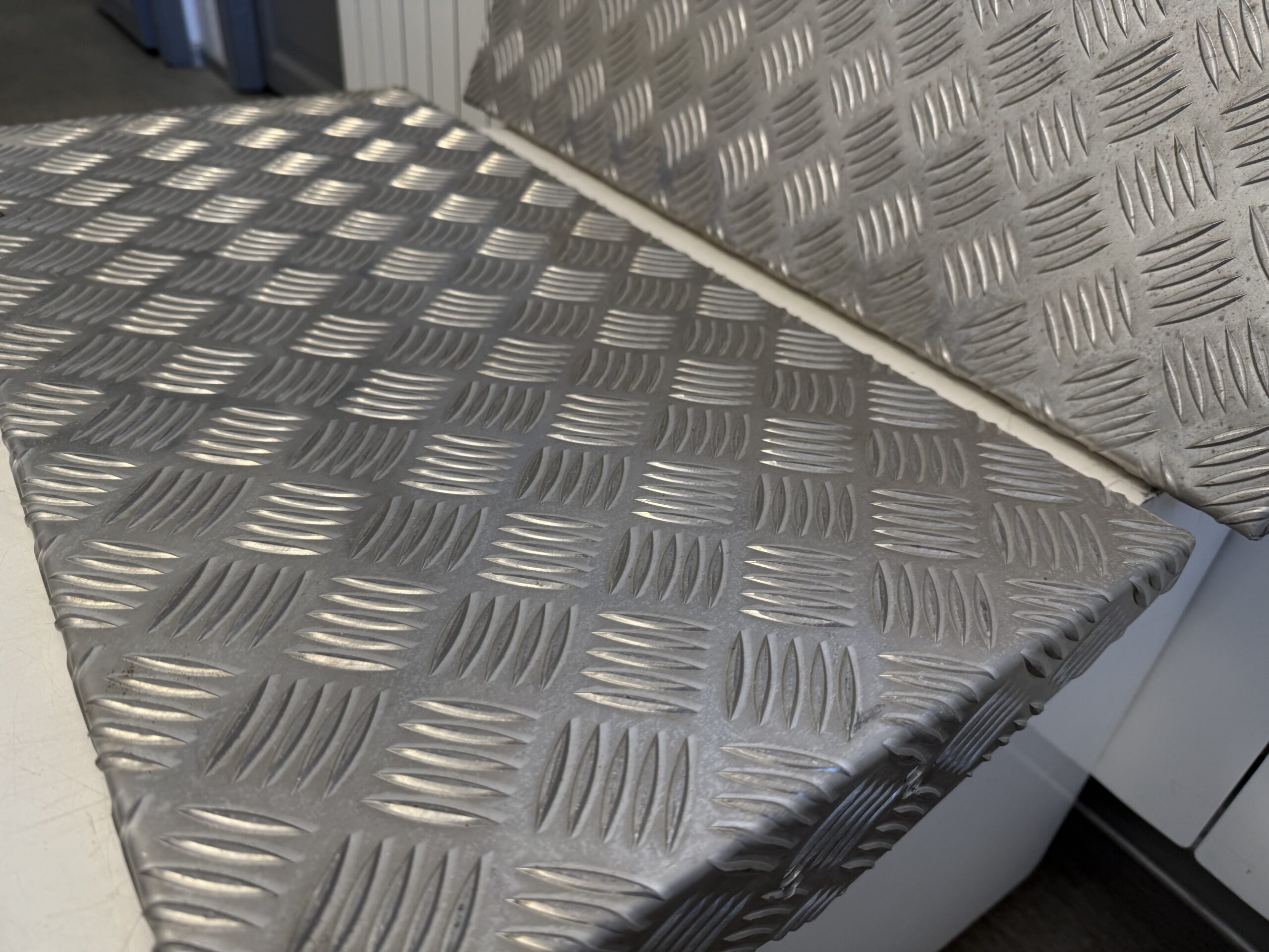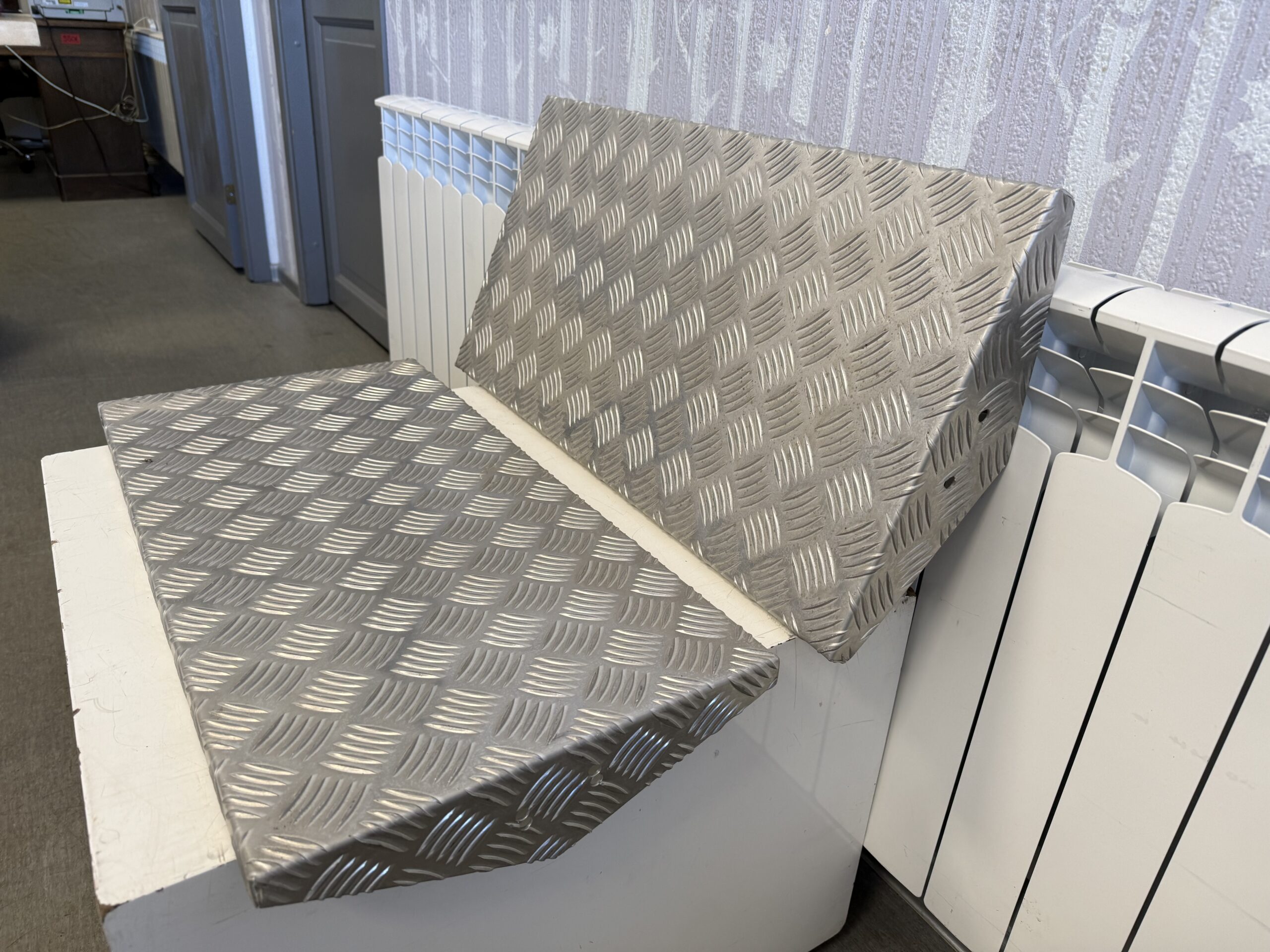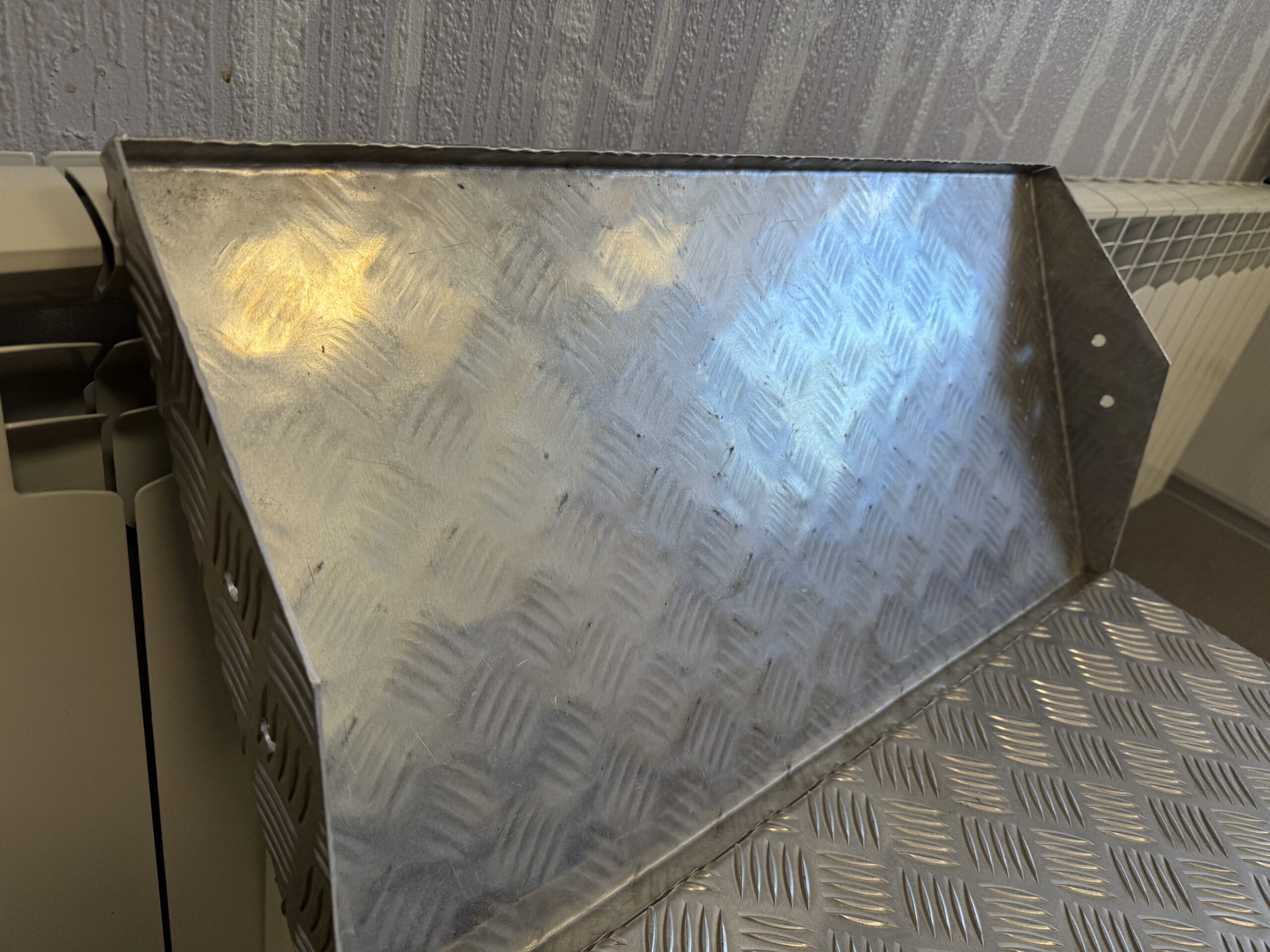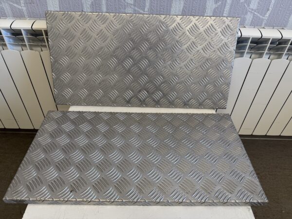 Müüa kasutatud alumiinium rihvellehed. Olid kasutuses arvatavasti trepi astmetel. Alumiiniumi sulam EN AW-5754. Keskmise tugevusega. Sobib hästi keevitamiseks. Kõrge korrosioonikindlus ja mereveekindel. Mõõdud: 70×35 ja painutatud 2cm. Paksus 2mm. Üks plaat kaalub 1,8kg. Kokku pakkuda kuskil 50tk. Lisandub km.
