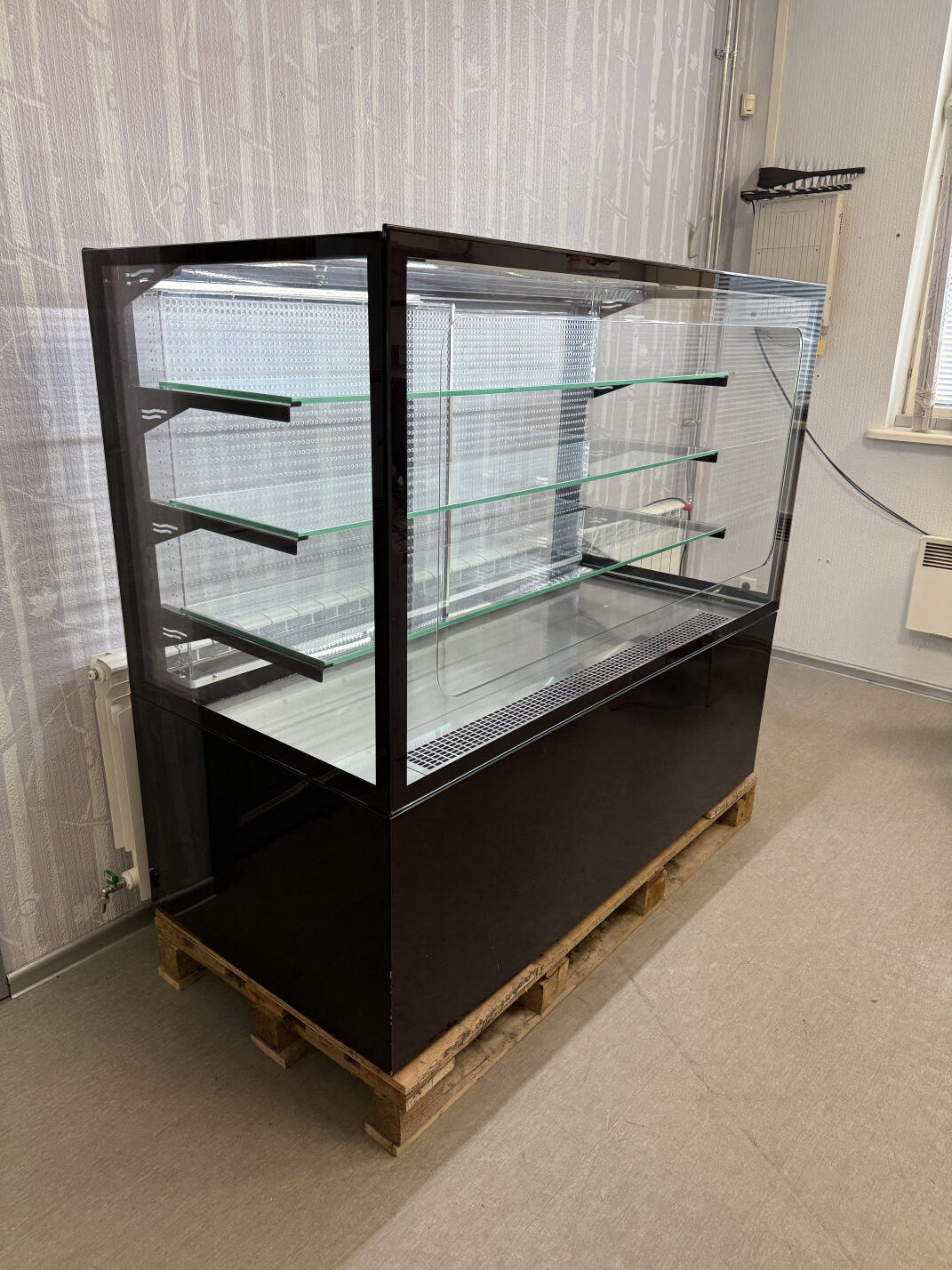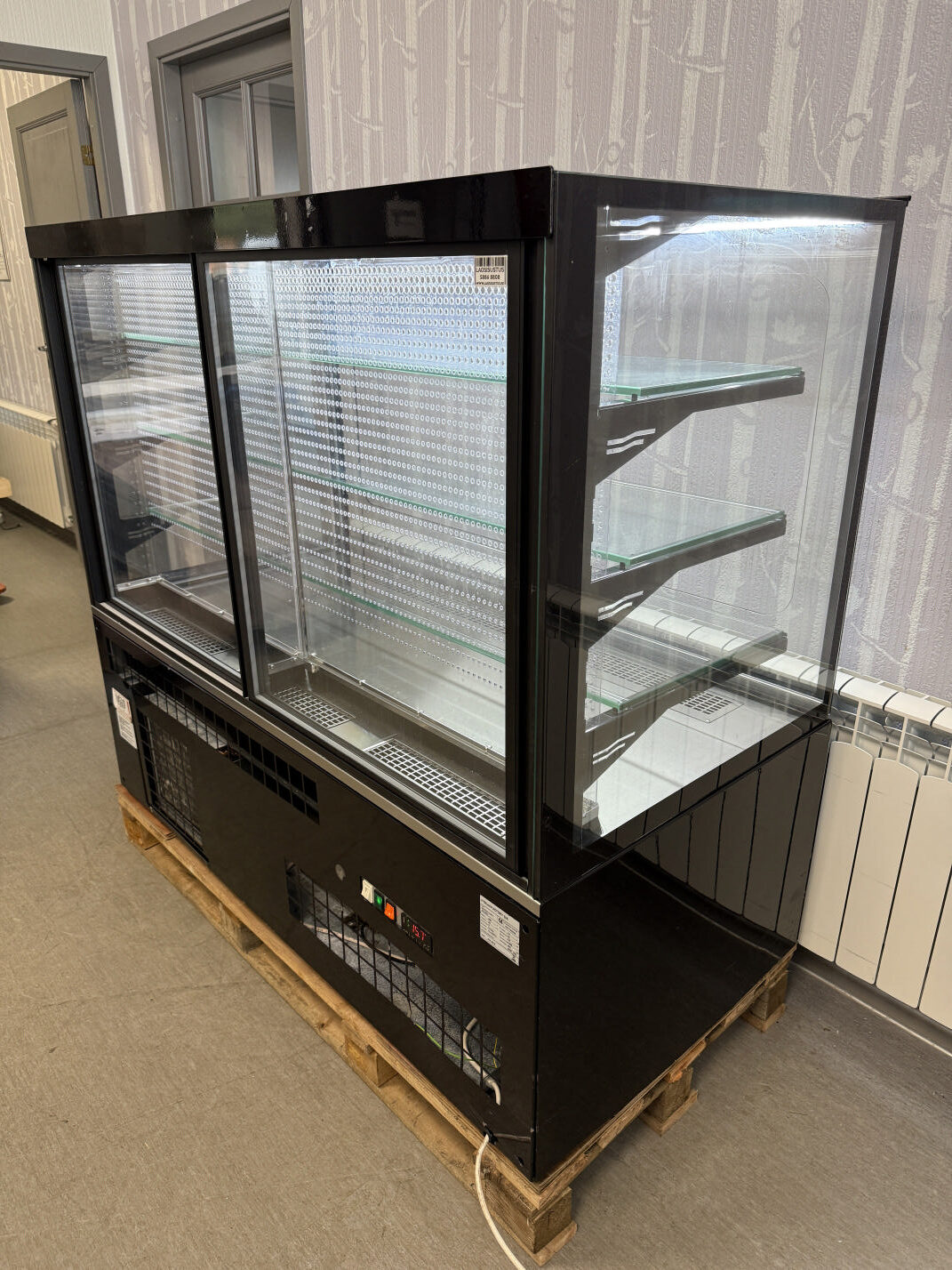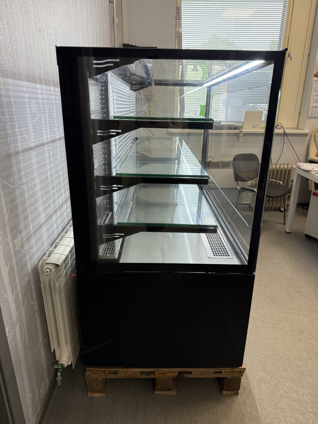 Müüa korralik iseteeninduslik külmvitriin / kondiitrivitriin. Tootja Unis, mudel Georgia Cube II 1500 Self. Toodetud 2019a. Elegantne musta värvi vitriin magustoitude, maiustuste, kondiitri- ja pagaritoodete jaoks kauplusesse, restorani, bensiinijaama. Sees 1 LED valgusti, mis teeb toodete presenteerimise palju nähtavamaks. Kõik küljed karastatud topeltklaas. Sees 3 karastatud klaasriiulit, mille kõrguseid võimalik reguleerida. Klaasriiuli mõõdud 144x35cm (2tk) ja 144x40cm (1tk), lisaks põhja mõõt 145x44cm. Temperatuuri vahemik +4…+8°C. Ventileeritav jahutus. Elektrooniline kontroller.  Automaatne sulatamine ja aurustamine. Hingedega esiklaas hõlpsaks puhastamiseks. Teenindaja pool 2 lükandust.
