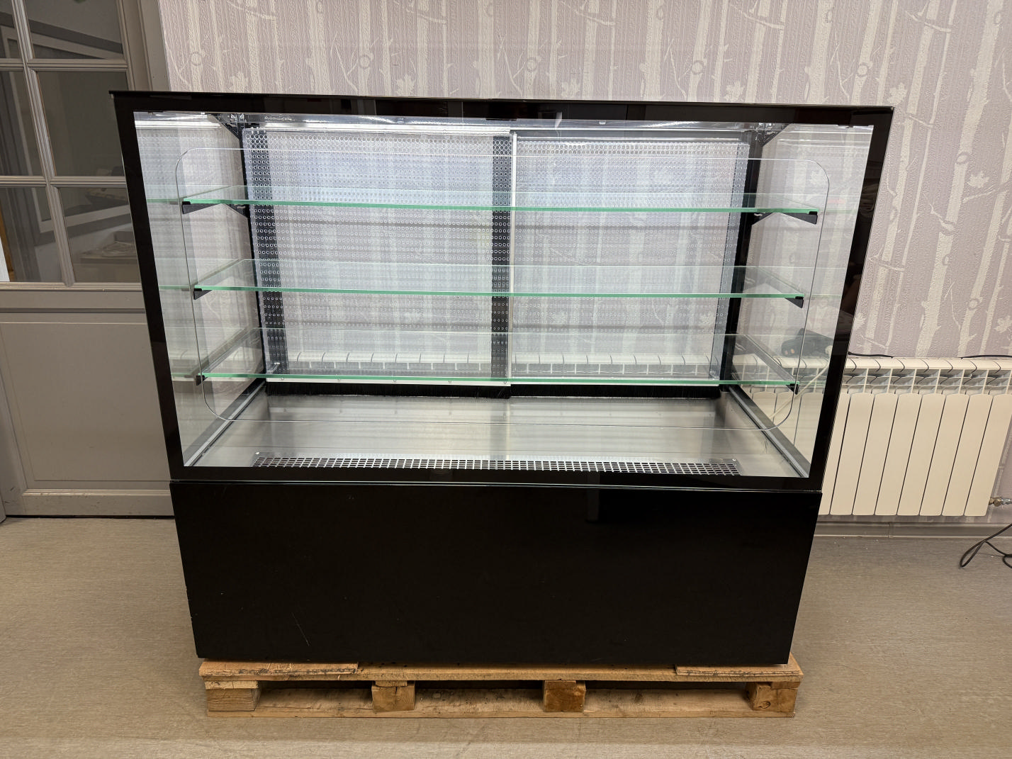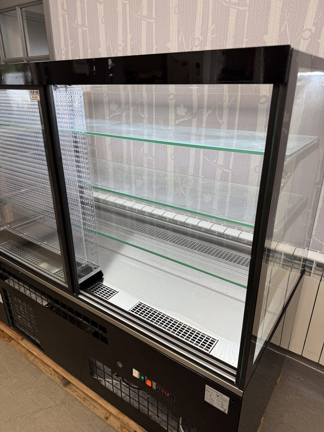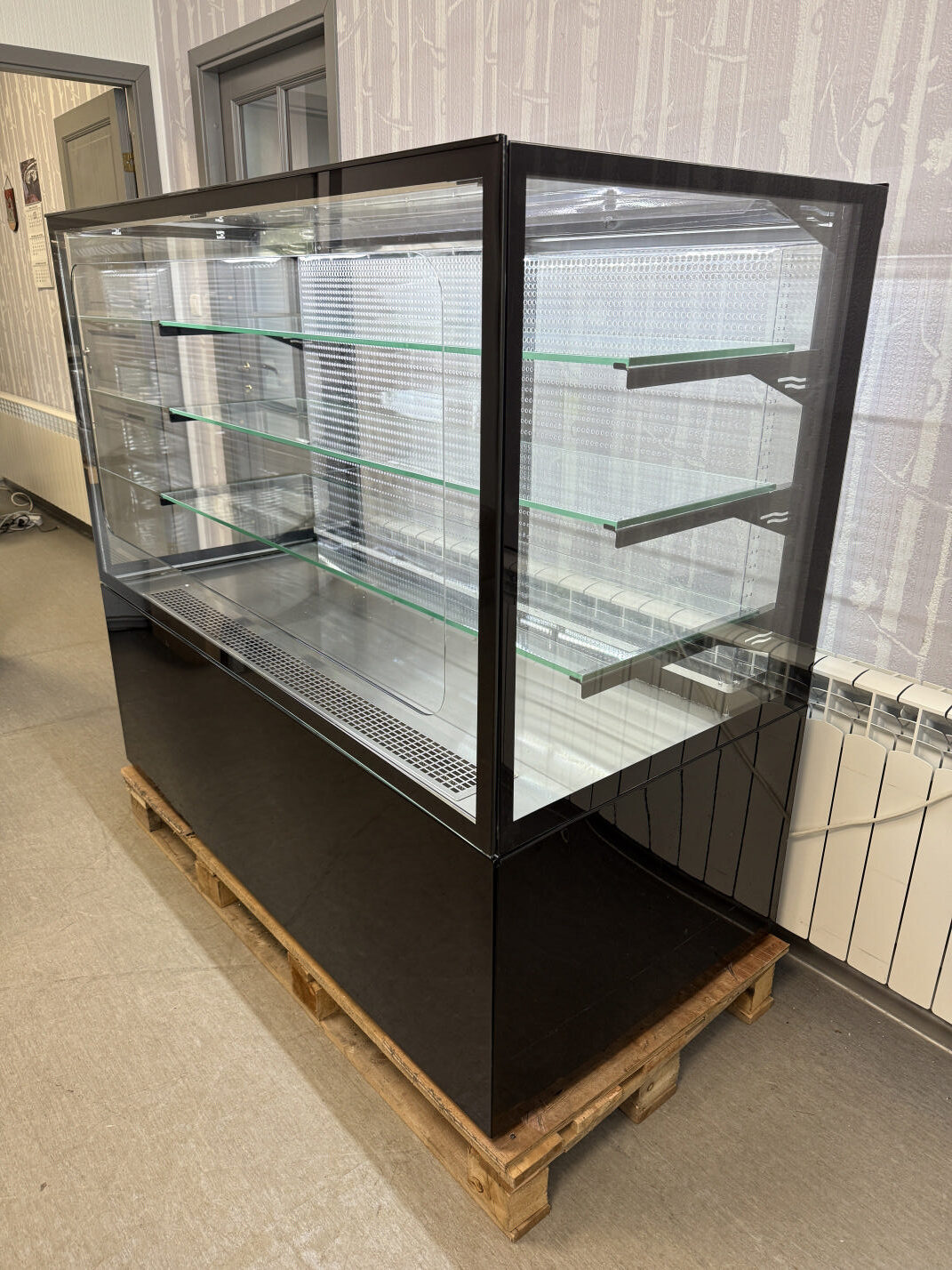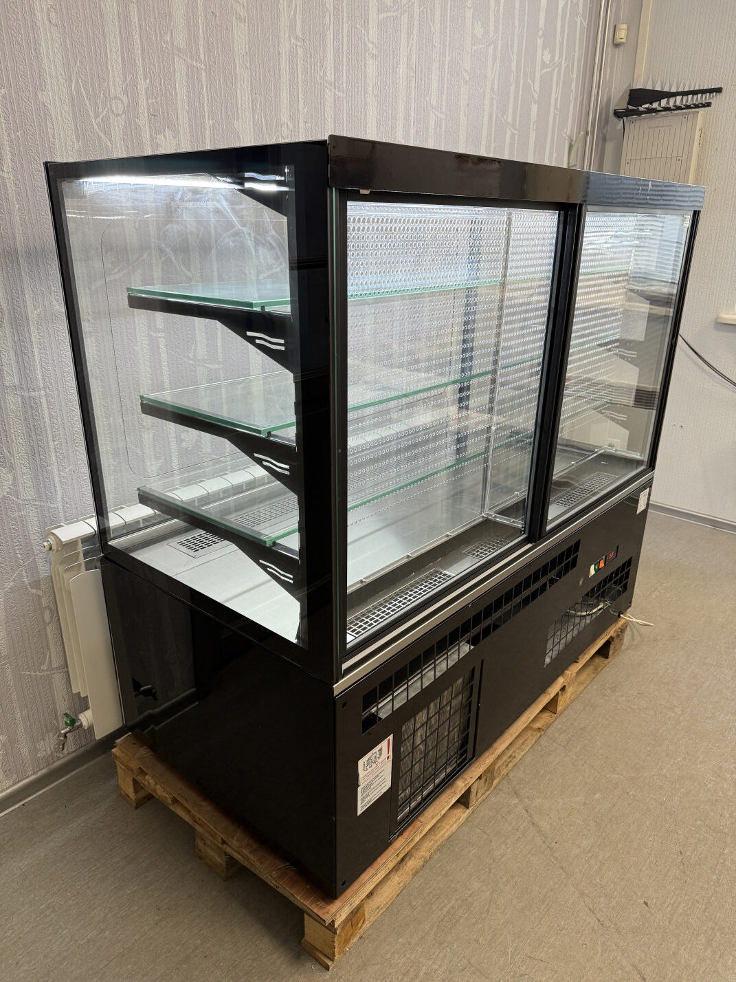 Müüa korralik iseteeninduslik külmvitriin / kondiitrivitriin. Tootja Unis, mudel Georgia Cube II 1500 Self. Toodetud 2019a. Elegantne musta värvi vitriin magustoitude, maiustuste, kondiitri- ja pagaritoodete jaoks kauplusesse, restorani, bensiinijaama. Sees 1 LED valgusti, mis teeb toodete presenteerimise palju nähtavamaks. Kõik küljed karastatud topeltklaas. Sees 3 karastatud klaasriiulit, mille kõrguseid võimalik reguleerida. Klaasriiuli mõõdud 144x35cm (2tk) ja 144x40cm (1tk), lisaks põhja mõõt 145x44cm. Temperatuuri vahemik +4…+8°C. Ventileeritav jahutus. Elektrooniline kontroller.  Automaatne sulatamine ja aurustamine. Hingedega esiklaas hõlpsaks puhastamiseks. Teenindaja pool 2 lükandust.