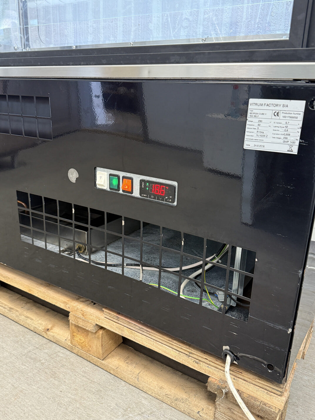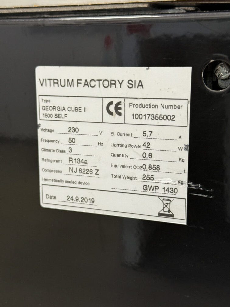 Külmvitriini mõõdud 150x74x134cm. Kaal 255kg.