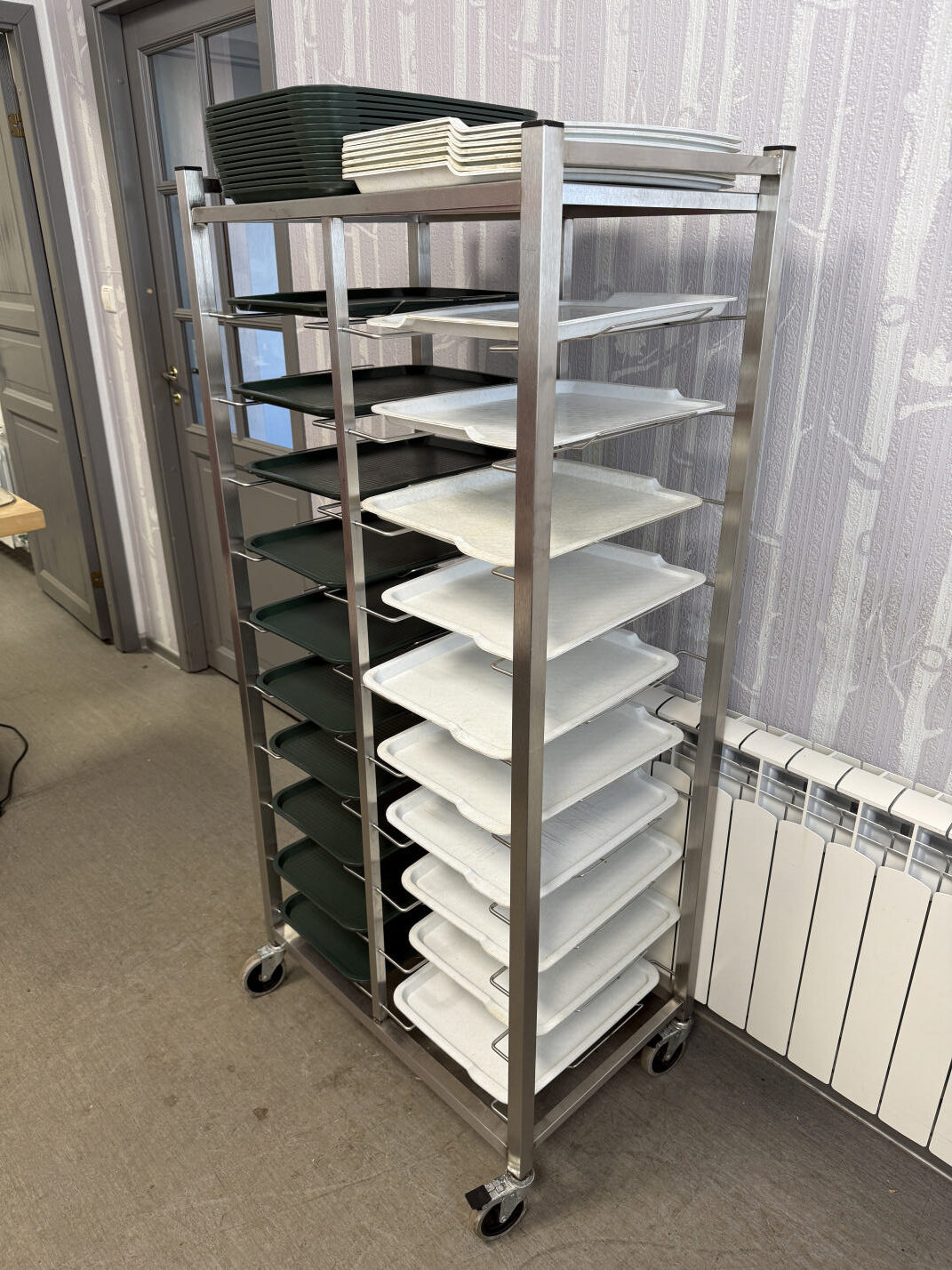 Müüa korralik roostevaba kandikute käru. Mahutab 10+10 kandikut. Kandikuhoidja on universaalne ja sinna mahub kandik, mille maksimaalne mõõt on 33x46cm. Kandikute vahe on 12cm. All 4 ratast, tänu millele on käru väga mugav ja kerge liigutada. Kahel rattal on ka stopperid.