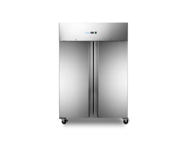 Võimas professionaalne kahe uksega külmkapp BRUTO mahutavusega 1200L. NETO mahutavus 791L. Valmistatud roostevabast terasest. Tooteid saab jahutada laias temperatuurivahemikus. See külmik kasutab ventilaatoriga staatilist jahutust, mis tagab külmiku sees oleva õhu ringlust ja sisu jahutatakse ühtlasel. Sees 6 reguleeritava kõrgusega võreriiulit, mis mahutavad ka 6x GN 2/1. Riiuli mõõdud on 54x65cm. Sees LED valgustus. Isesulguvad uksed antibakteriaalse tihendiga, lisaks sisseehitatud lukud. Digitaalne temperatuuri reguleerimine vahemikus 0 kuni 8 °C. Ventilaatoriga jahutussüsteem, mis vähendab jää tekkimist. All on neli ratast, millest 2 piduritega.