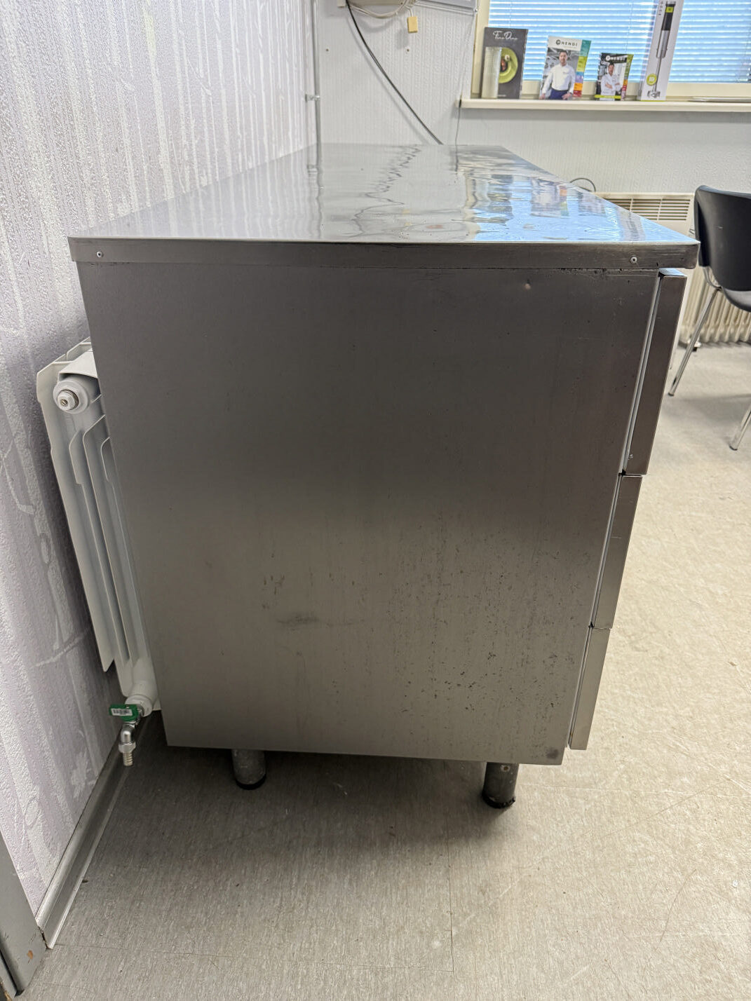 Materjal roostevaba teras. Kaal 135kg, võimsus 0,4kW, 230V. Digitaalne termostaat, automaatsulatus, kiirvahetatav külmaagregaat, reguleeritava kõrgusega jalad (+/- 15mm).