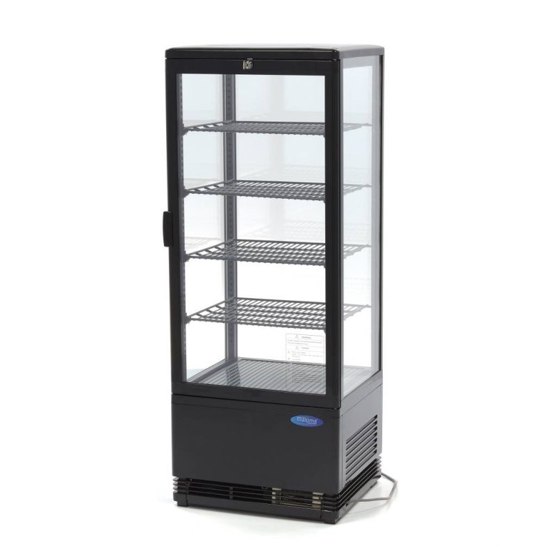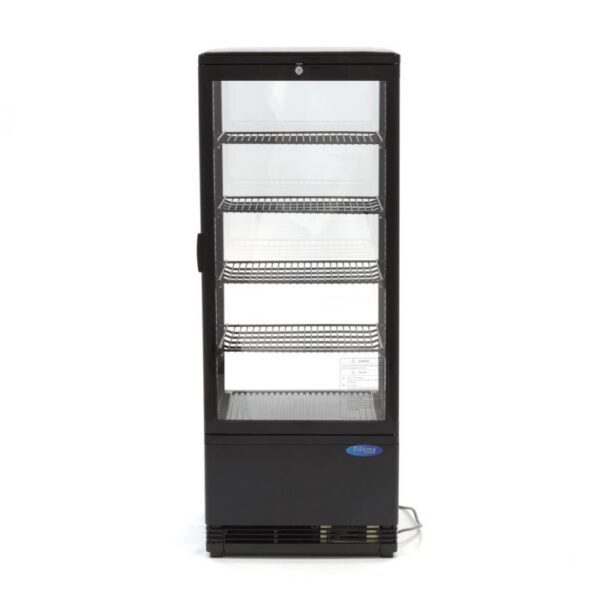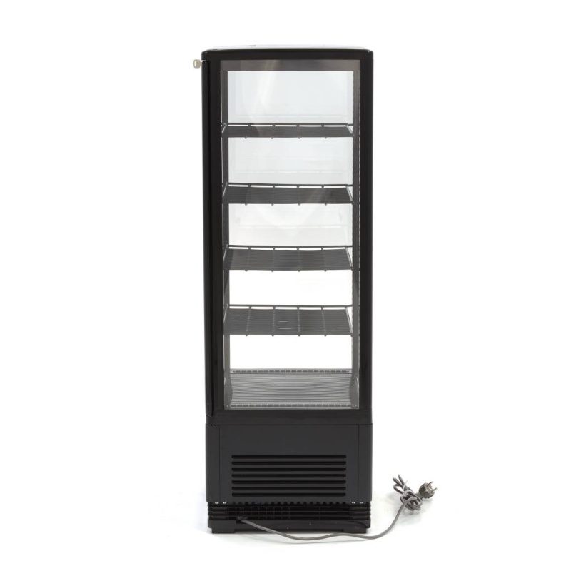 Uus LED-valgusega külmvitriin. Mahutavus 98L. Sobilik näiteks võileibade, jookide, salatite ja piimatoodete jahutamiseks ja esitlemiseks. Ideaalne pagariäridele või toitlustusettevõtetele, et näidata klientidele pakutavaid tooteid. Temperatuuri võimalik seadistada vahemikus 0° kuni 12°C. Digitaalne temperatuuri kontroller. Automaatne sulatussüsteem. Sees 4 reguleeritava kõrgusega riiulit, mille mõõdud on 36x31cm. Põhja mõõt 40x34cm. Uks on lukustatav, komplektis 2 võtit. Vitriini üldmõõdud on 43x38x111cm. Kaal 38kg. Võimsus 180W, 230V.