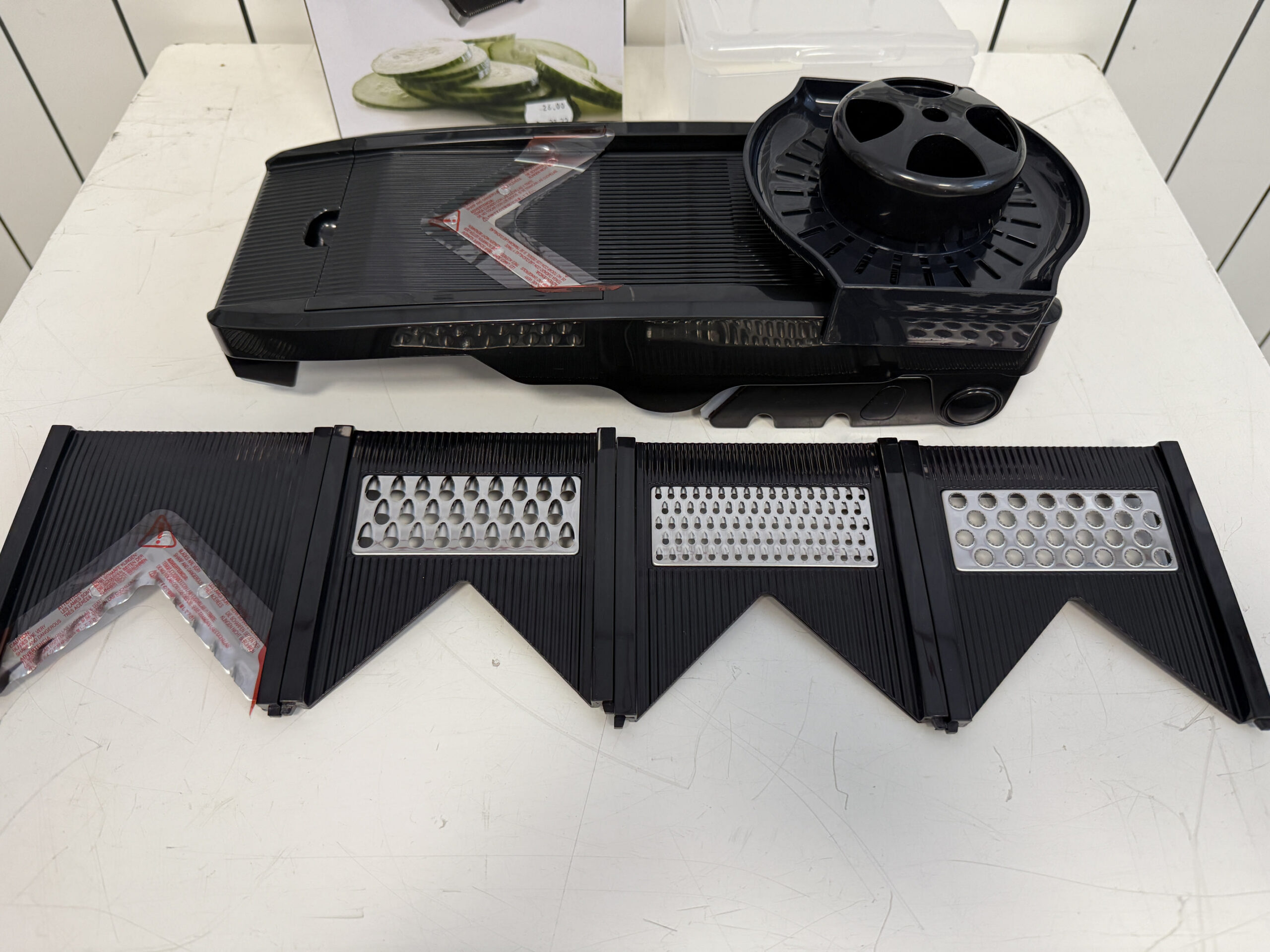 Valmistatud kõvast mustast plastist, lõiketerad kõrgekvaliteedilisest roostevabast terasest.