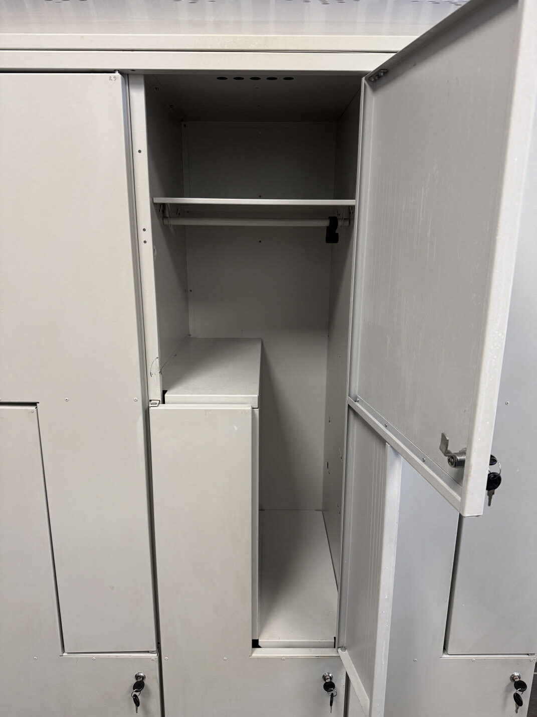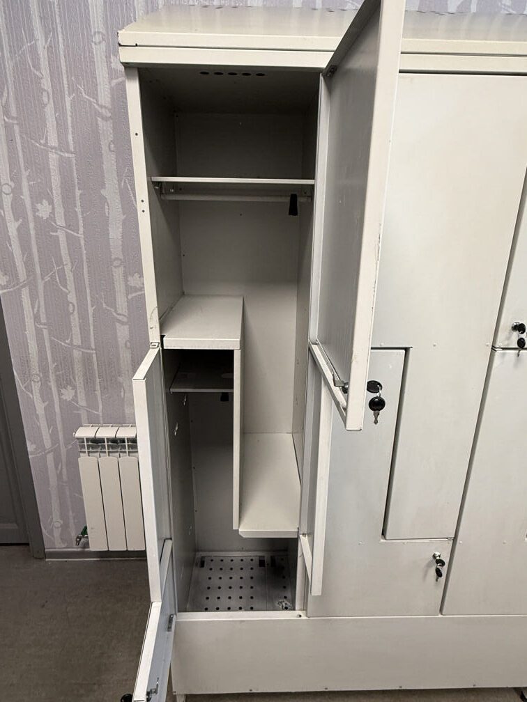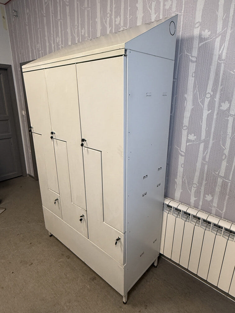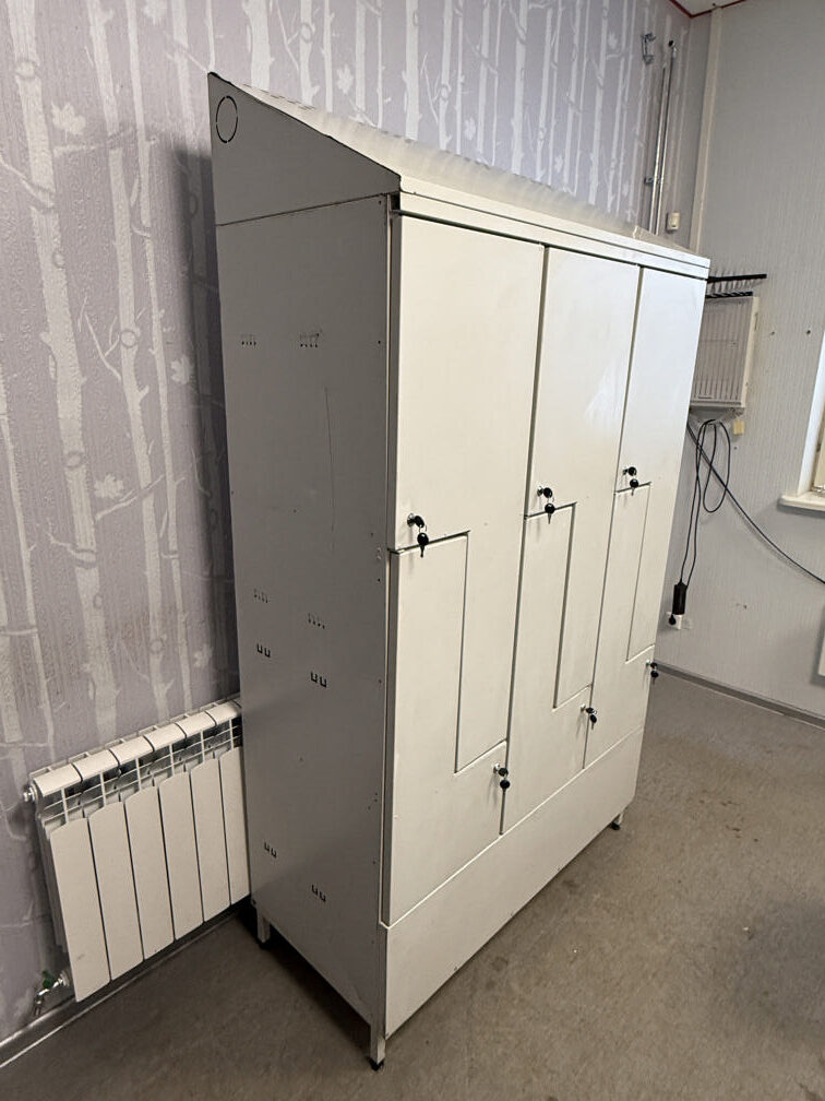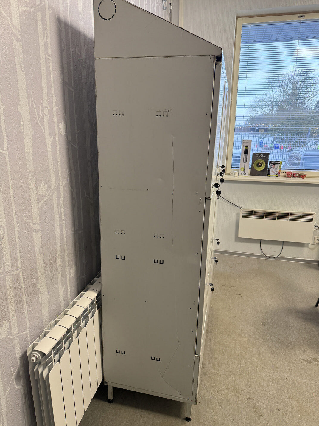 Müüa kasutatud metallist riidekapid. Kapid tugevad ja vastupidavad. Kapi korpus on kokku keevitatud ja pulbervärvitud. Kapp on kaldkatusega. Mahutab kokku 6 töölist. Igas kapis riputustoru konksudega. Ventilatsiooniavad paiknevad kapi põhjas ning ülaosas. Kapil on all reguleeritavad jalad. Ülemiste kappide sisemõõt on 40x50x111cm, riiul 40x35cm (kõrgus on mõõdetud tagaseinast kust kapp kõrgem). Alumiste kappide mõõt on 40x50x113cm, riiul 20x35cm.