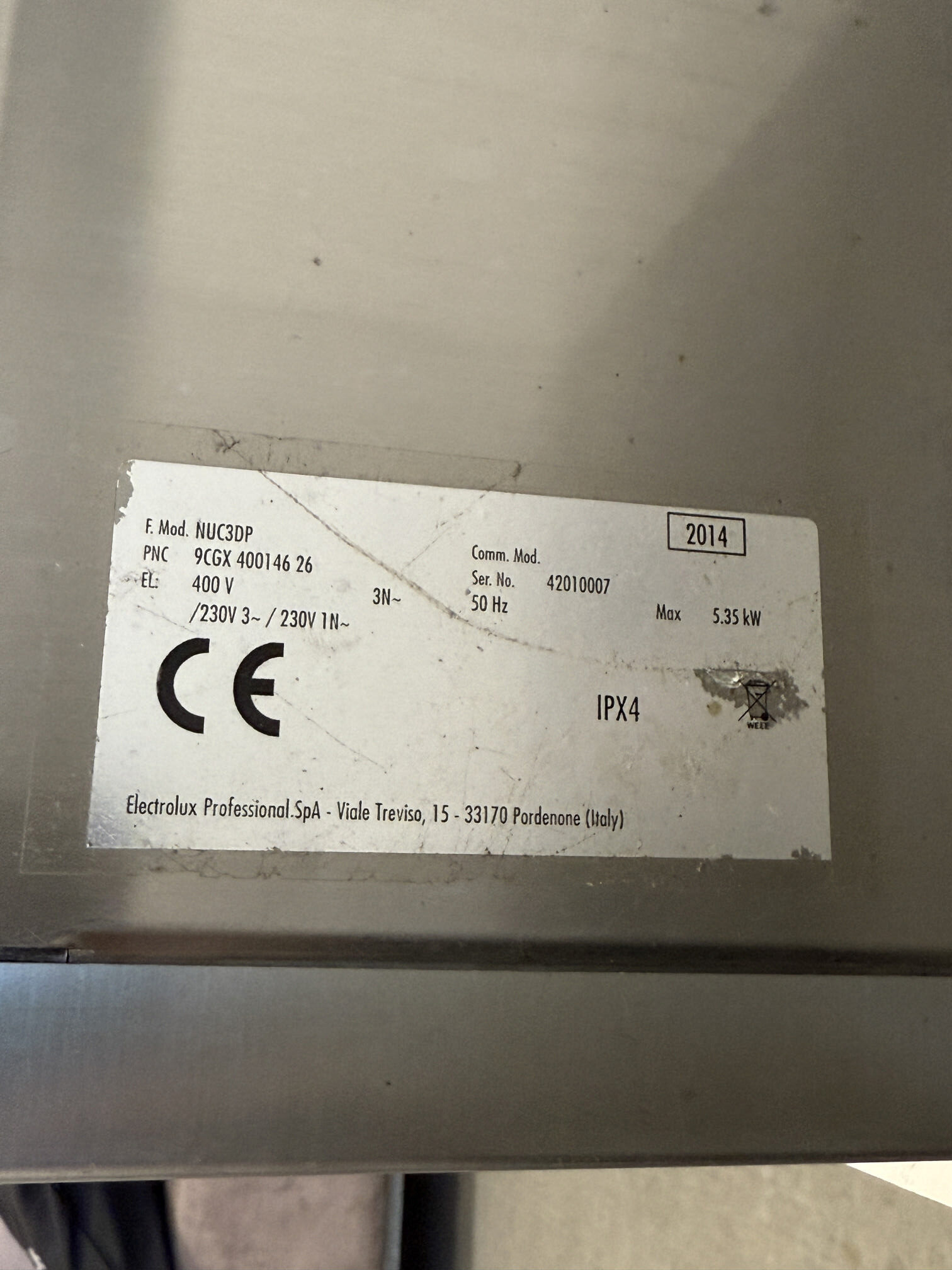 Müüa kasutatud eestlaetav suurköögi nõudepesumasin. Tootja Electrolux, mudel NUC3DP. Masin töötab ja toimetab ilusti. 2 pesuprogrammi. Sobib ideaalselt kohvikusse või suuremasse toidukohta. Pesuprogrammiga tootlikkus kuskil 55 korvi tunnis. Sees pesukäpad plastik tüüsidega. Käpad ja plastik osad on natuke kulunud. Kasutatav korvidega 50x50cm, maksimum kõrgus 32cm. Masin on tööstusvoolu pealt. Masinal on reguleeritavad jalad.