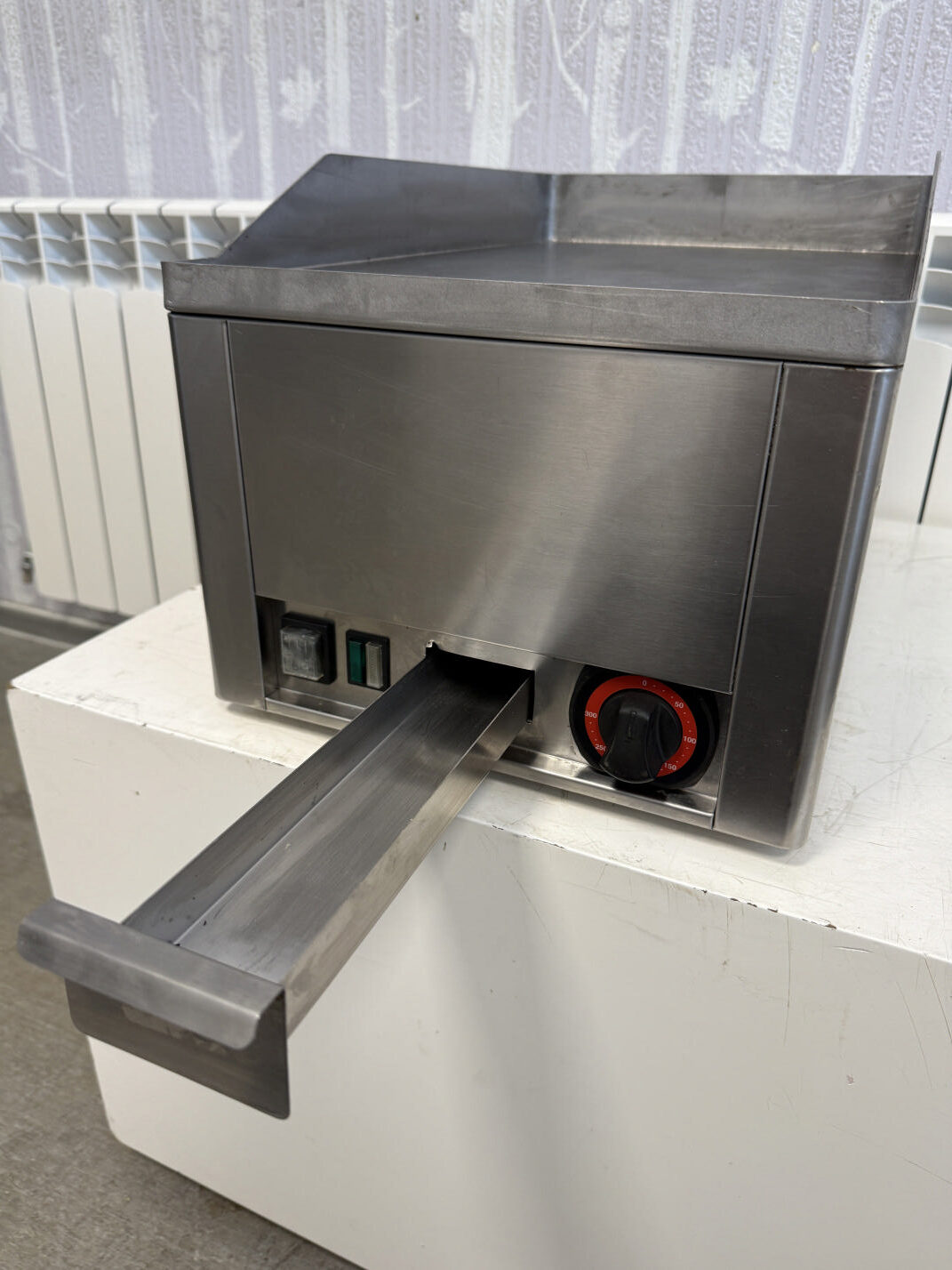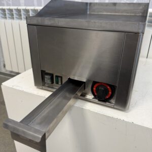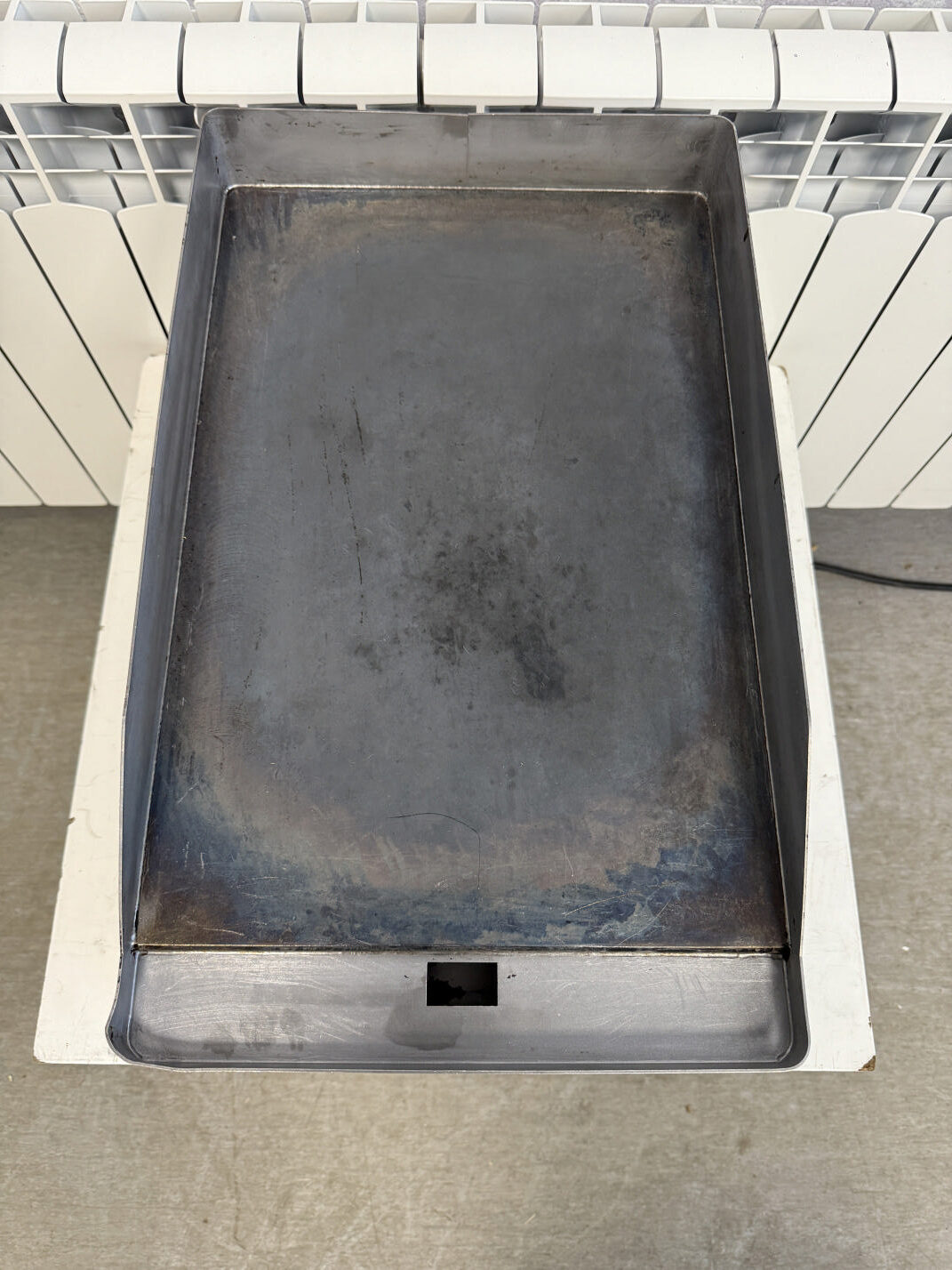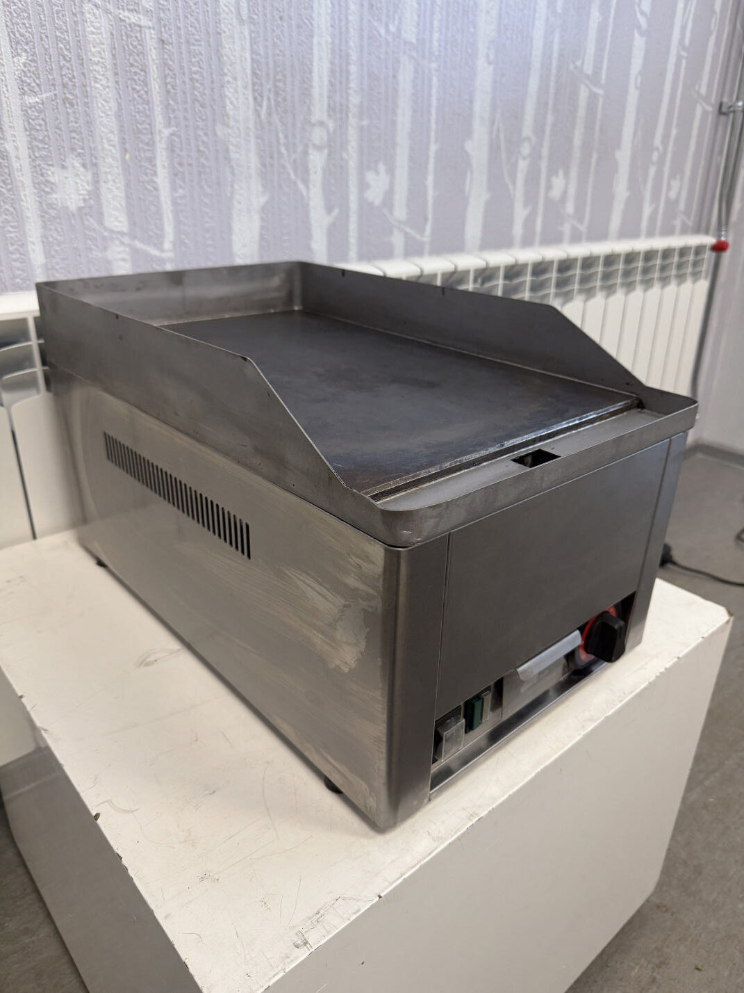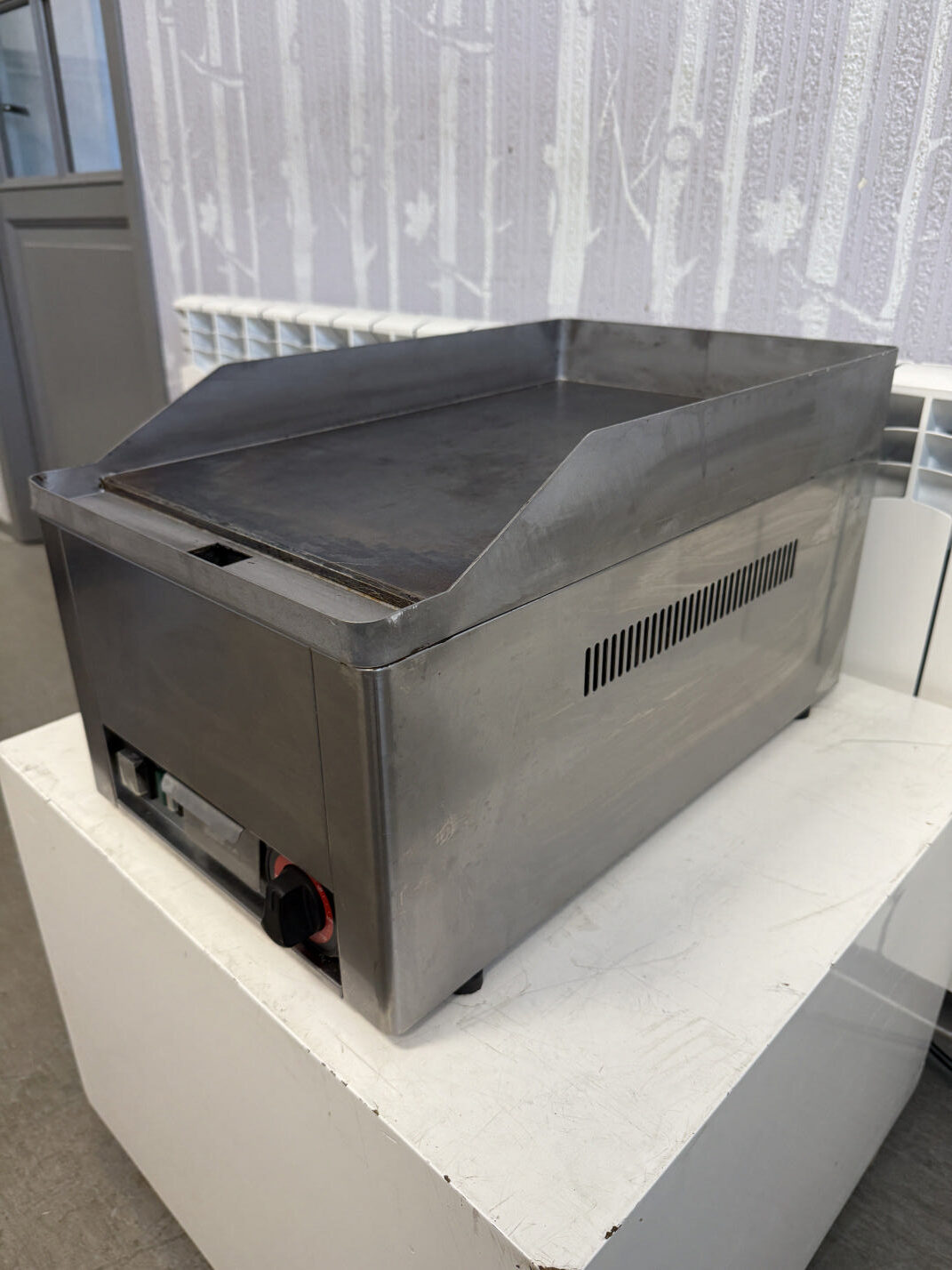 Müüa kasutatud plaatgrill. Plaatgrill on köögis kui suur pann, kus saab praadida kõike mida praeksid pannil. Plaatgrillide plussiks lihtne kasutada, kerge puhastada ja tugeva konstruktsiooniga. Konstruktsioon on valmistatud tervenisti roostevabast terasest ning viimistletud ümarate servadega. Lauapealne mudel. Temperatuuri vahemik  60-300 °C. Olemas õlivann, mida lihtne tühjendada.