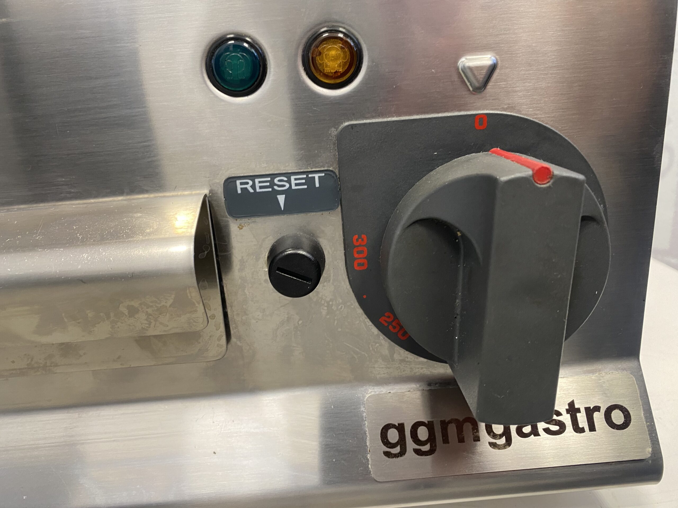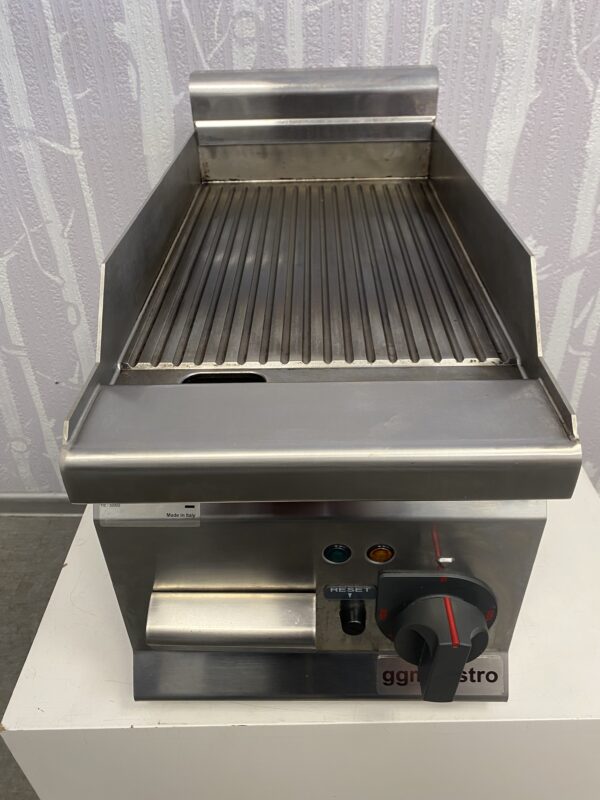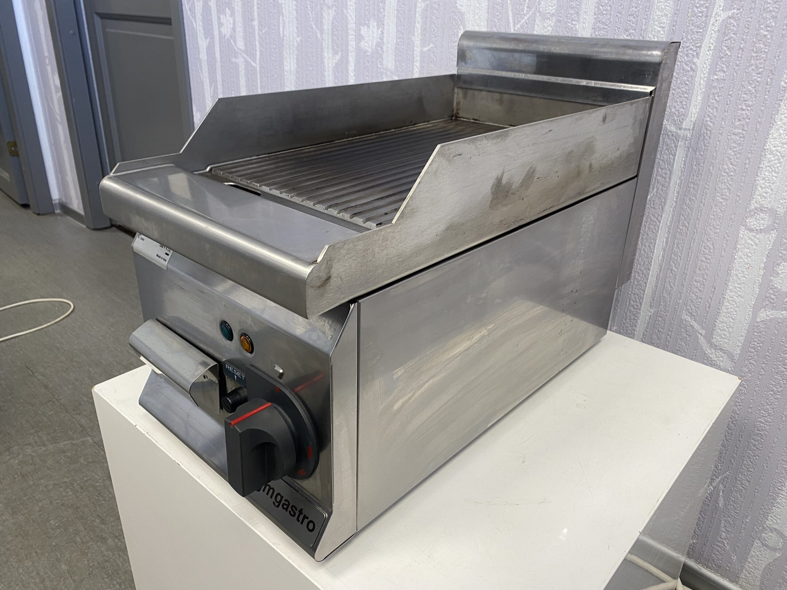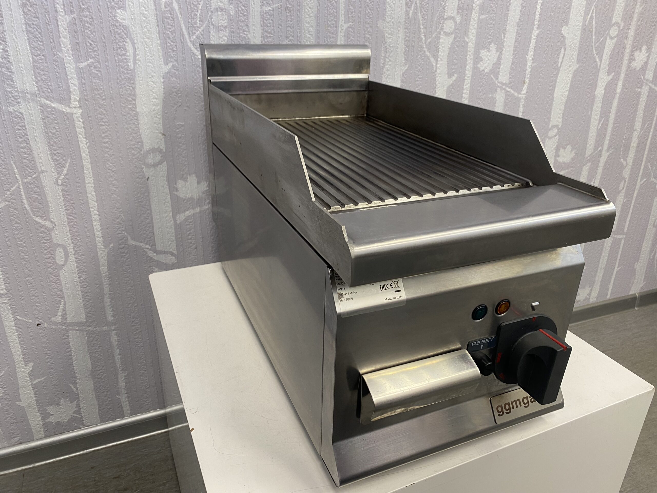 Müüa korralik tööstuslik grillplaat firmalt GGM Gastro. Mudeliks EGB363PG. Grilli plaat soontega ja valmistatud kroomitud terasest, sobib õlita küpsetamiseks. Grilli on väga vähe kasutatud, toodetud 2021. Küpsetuspinna mõõt 29x43cm. Temperatuur kuni 300C. Termostaadist reguleeritav. Ees rasva, sodi kogumise vann. Reset nupp/ ülekuumenemis kaitse. Reguleeritavad jalad. Meil oleks pakkuda ka grillile sobiv raam et töö kõrgus oleks 90-100cm. Võimsus 400V 4kW. Mõõdud 30x60x41cm. Kaal 30kg.
