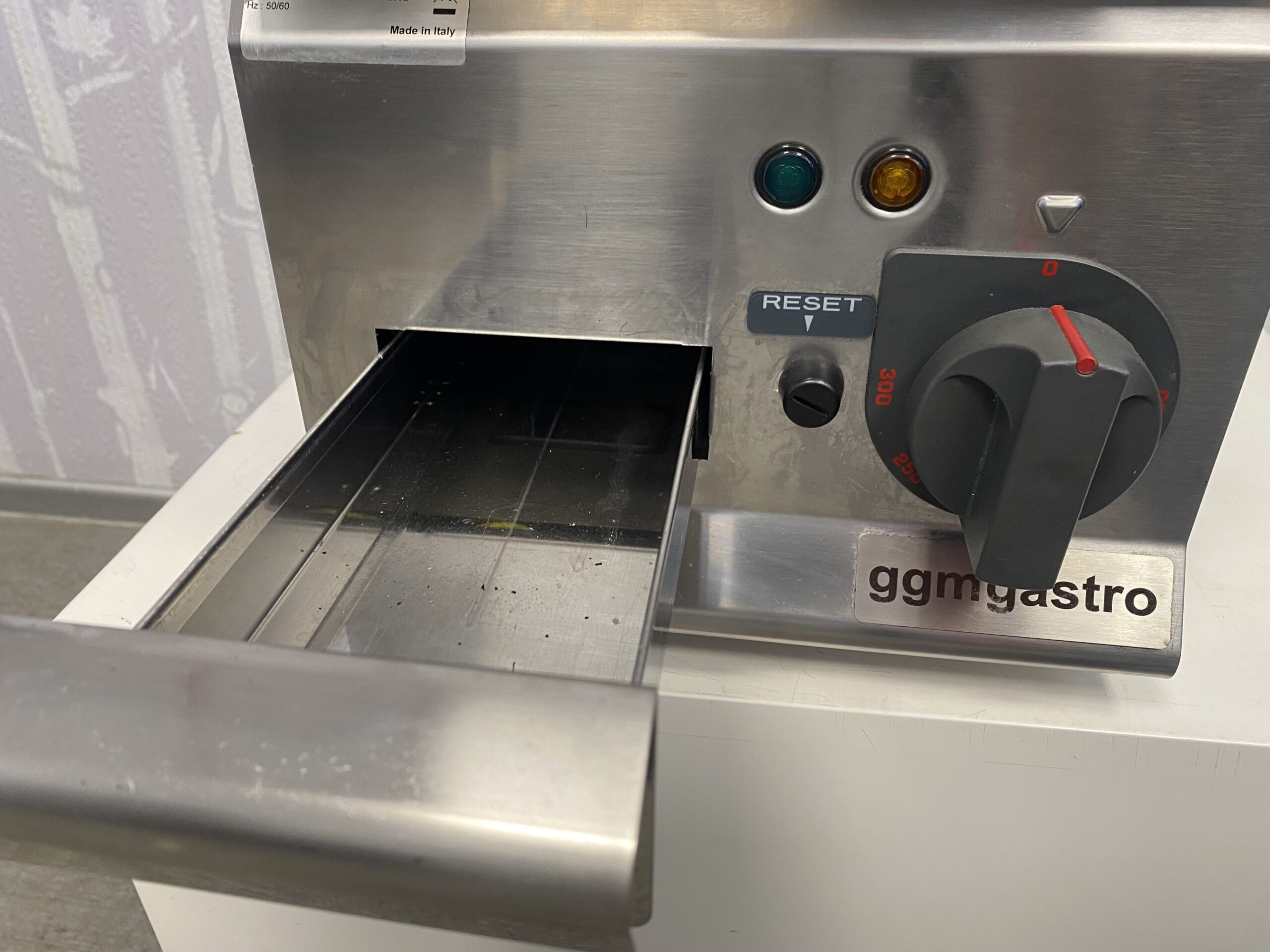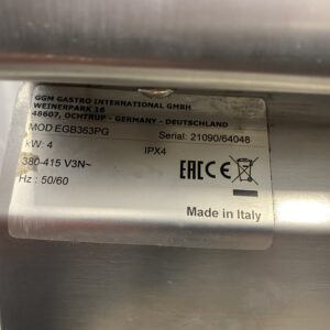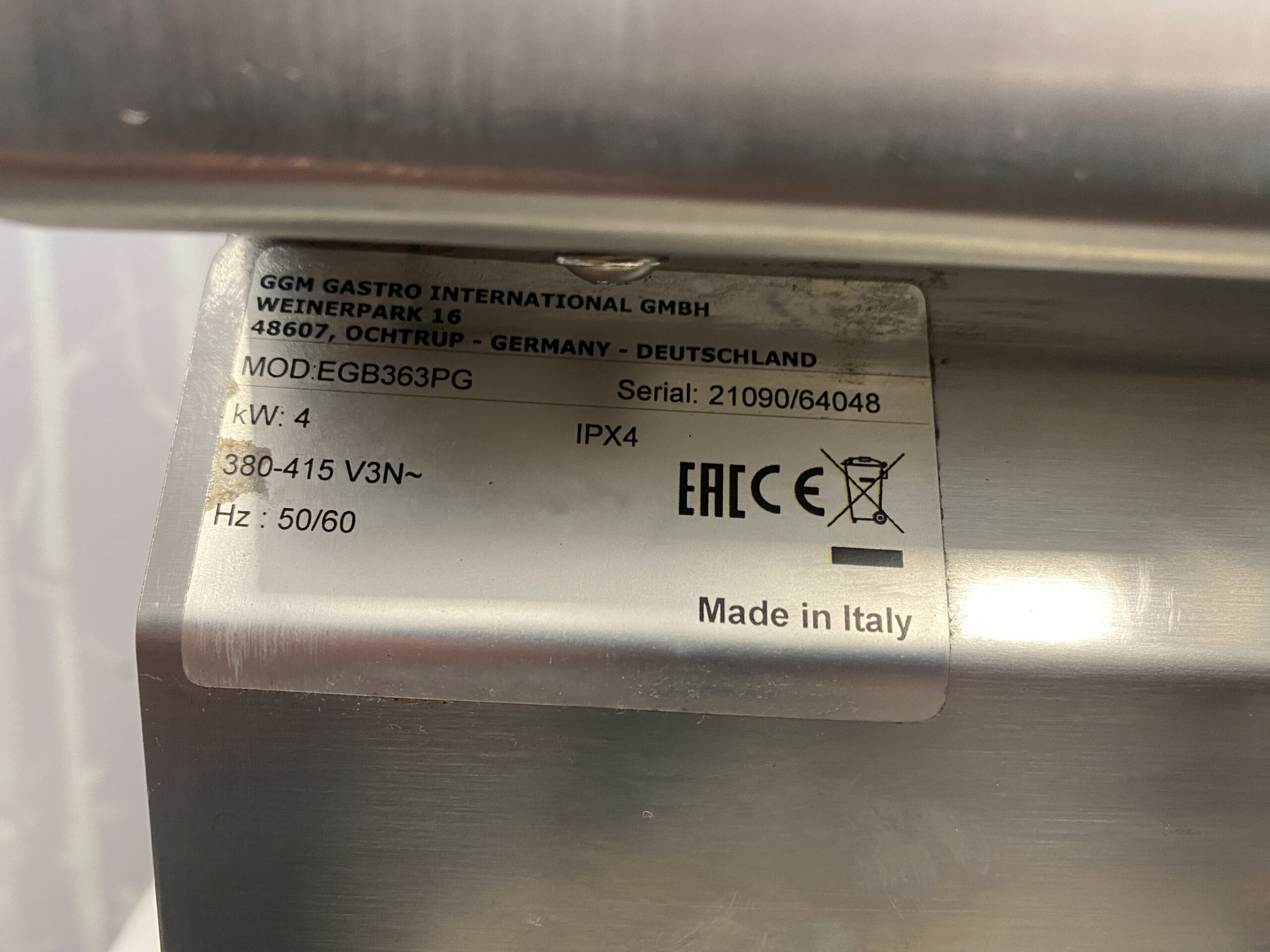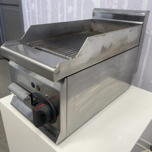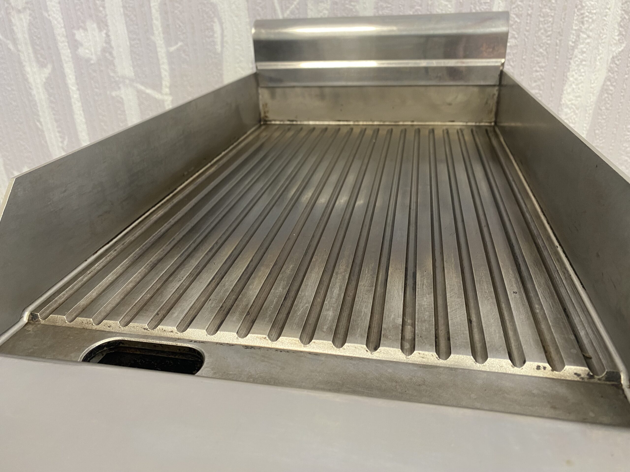 Müüa korralik tööstuslik grillplaat firmalt GGM Gastro. Mudeliks EGB363PG. Grilli plaat soontega ja valmistatud kroomitud terasest, sobib õlita küpsetamiseks. Grilli on väga vähe kasutatud, toodetud 2021. Küpsetuspinna mõõt 29x43cm. Temperatuur kuni 300C. Termostaadist reguleeritav. Ees rasva, sodi kogumise vann. Reset nupp/ ülekuumenemis kaitse. Reguleeritavad jalad. Meil oleks pakkuda ka grillile sobiv raam et töö kõrgus oleks 90-100cm. Võimsus 400V 4kW. Mõõdud 30x60x41cm. Kaal 30kg.