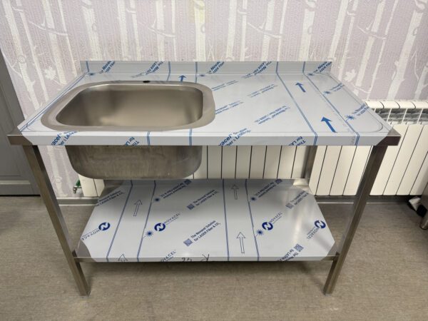 Müüa roostevaba laud suure valamuga. Sobib nii eelpesusse kui potipesusse. Valamu mõõt 50x40x25cm. Valamu vasaku. Reguleeritavad jalad. All riiul mõõduga 116x50cm, vahe 58cm. Töötasapinnal ja riiulil tagaäär üles 5cm.
