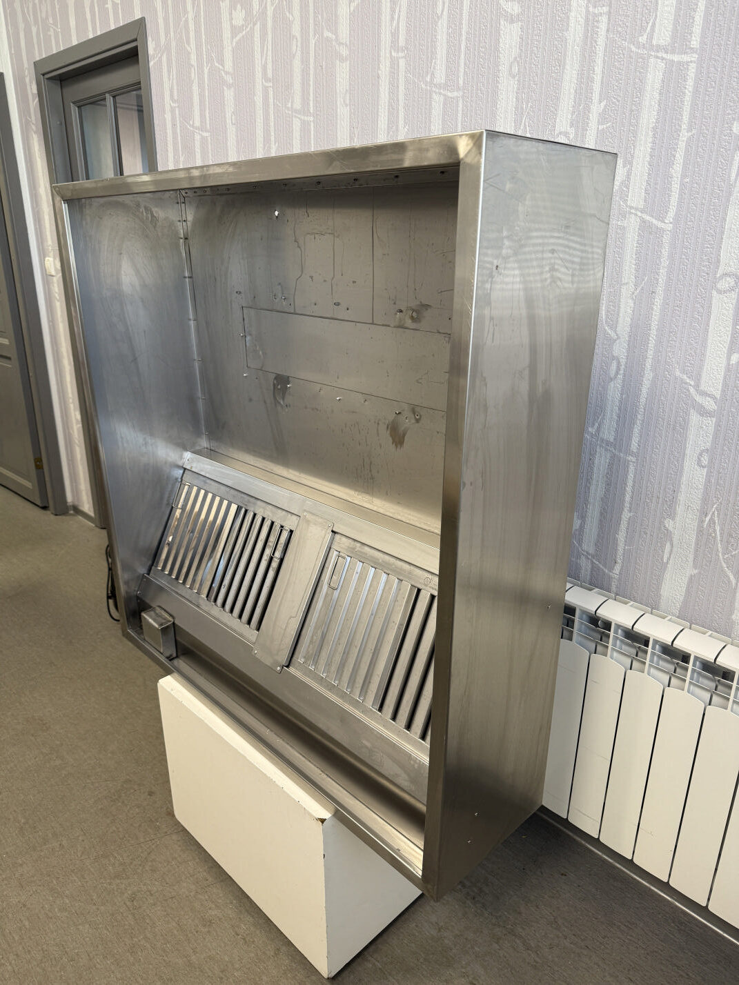 Müüa korralik roostevaba suurköögi kubu. 2 roostevaba rasva filtrit. Õli kogumis vann. Võimalik kinnitada nii lakke kui seina, keermelattidega võimalik väga kergelt ka alla poole tuua. Taga väljatõmbe ava võimalik 16cm. Sisse võimalik paigaldada valgusti, ruumi selleks piisavalt.