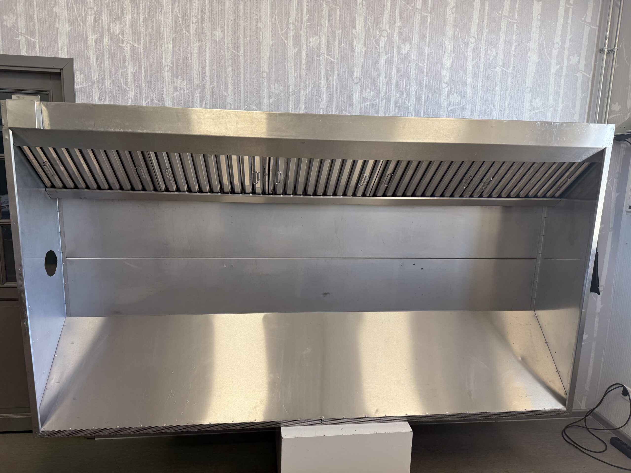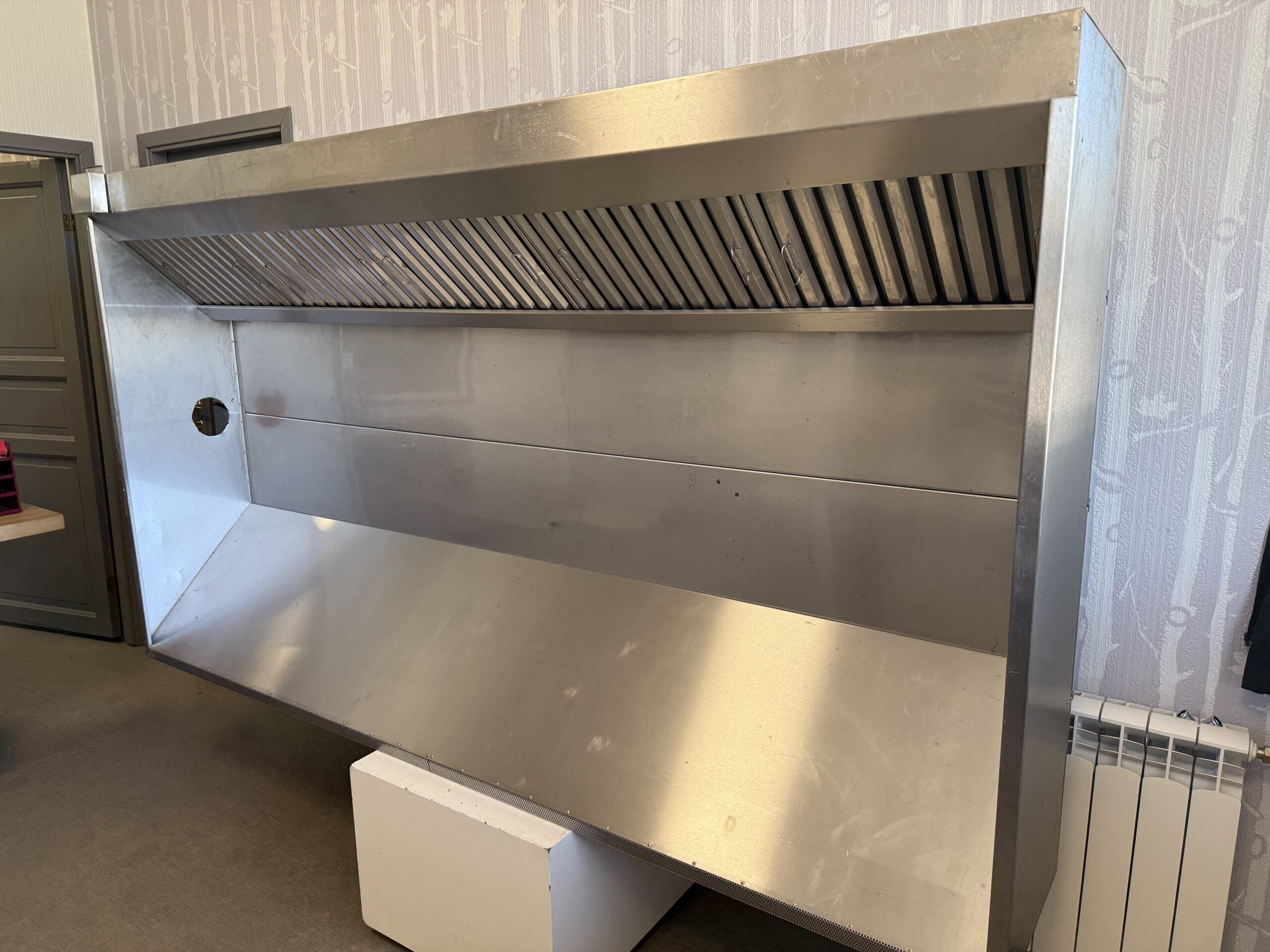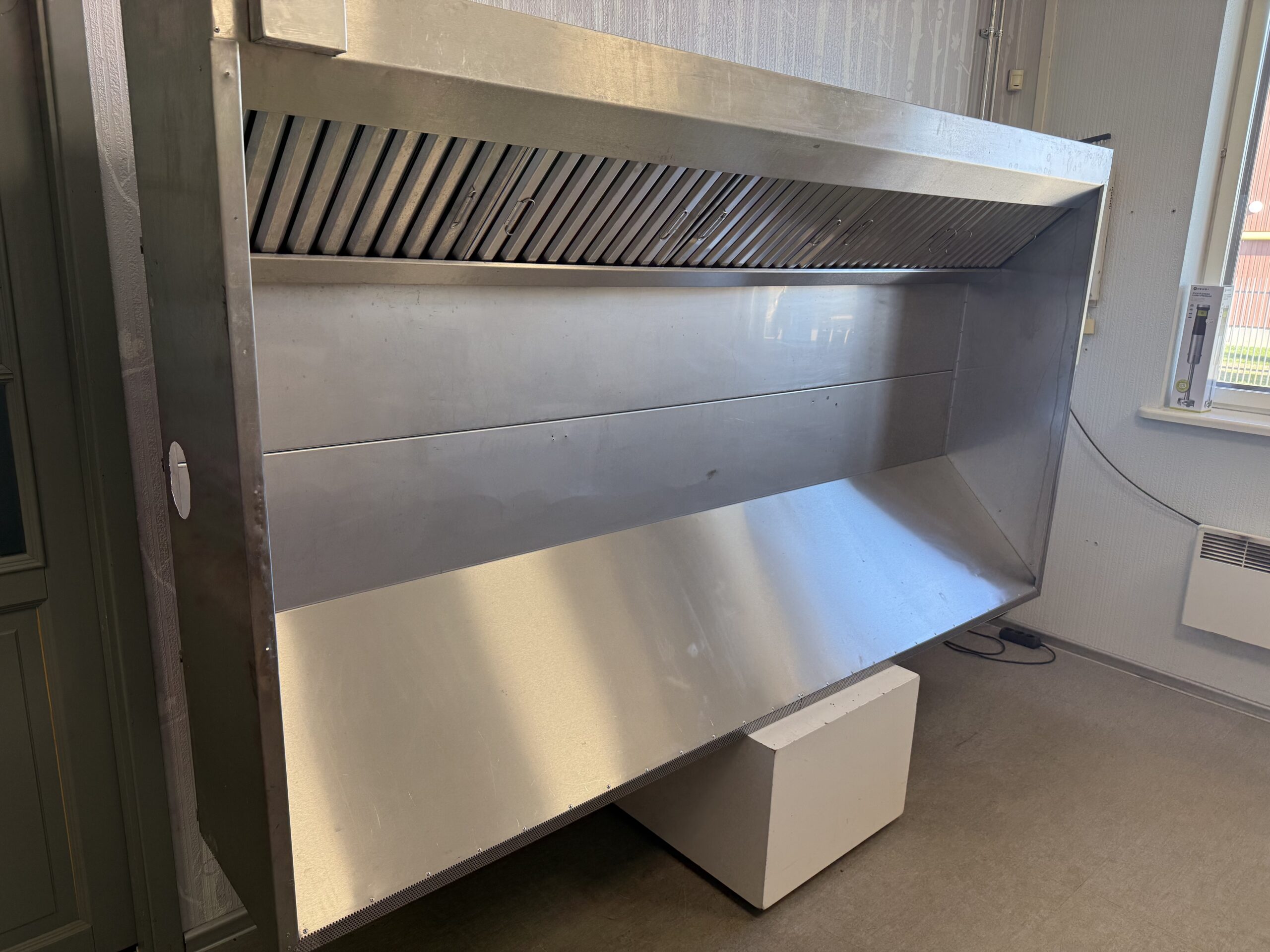 Müüa ilus ja korralik roostevaba suurköögi kubu. Kahesüsteemne – nii sisse kui välja puhe. 5 roostevaba rasva filtrit. Filtrid on kahe kihiga – esimene roostevaba, mis peab kinni suurema rasva ja osakesed, teine kiht alumiiniumist, et kätte saada ka see kõige peenem osake. Kahesüsteemne – läbi roostevaba filtrite väljatõmme, eest läbi restide sissepuhe. Taga väljatõmbe toru 2x31cm ja ees sissepuhe 3x24cm. Ees väike roostevaba rasvavann. Keskele võimalik paigaldada valgusti. Sobib kasutamiseks nii seinaääres kui ka keskpõrandal. Mõõdud 250x140x42cm.