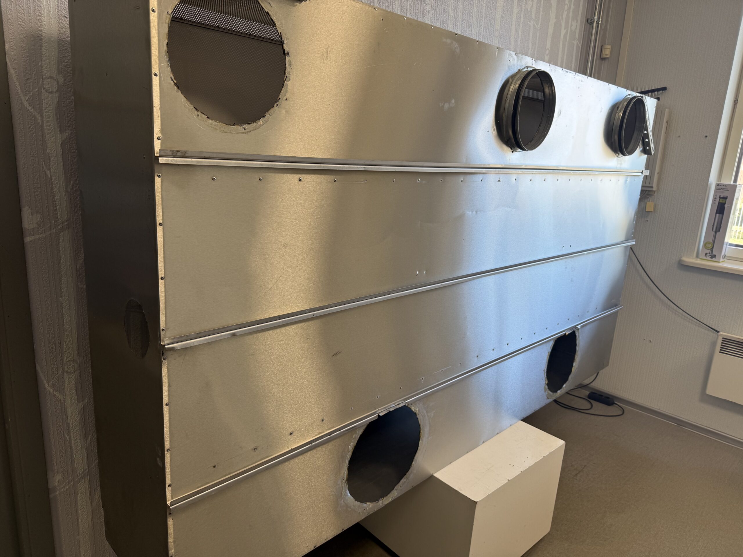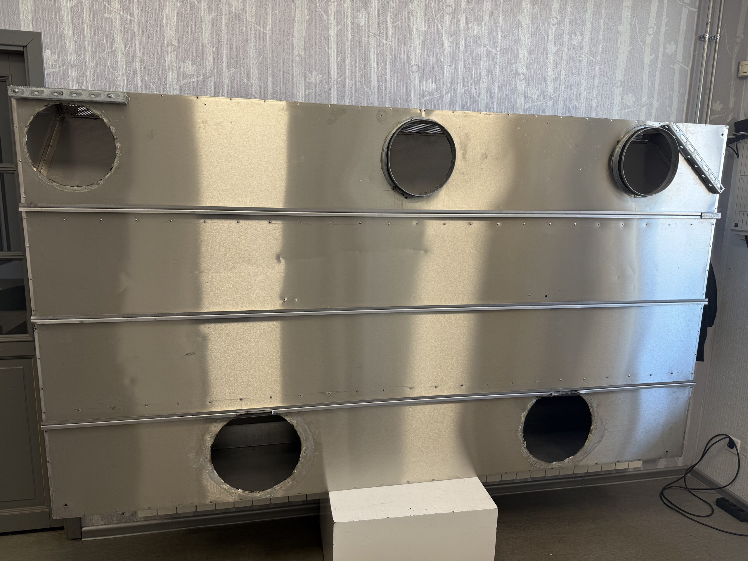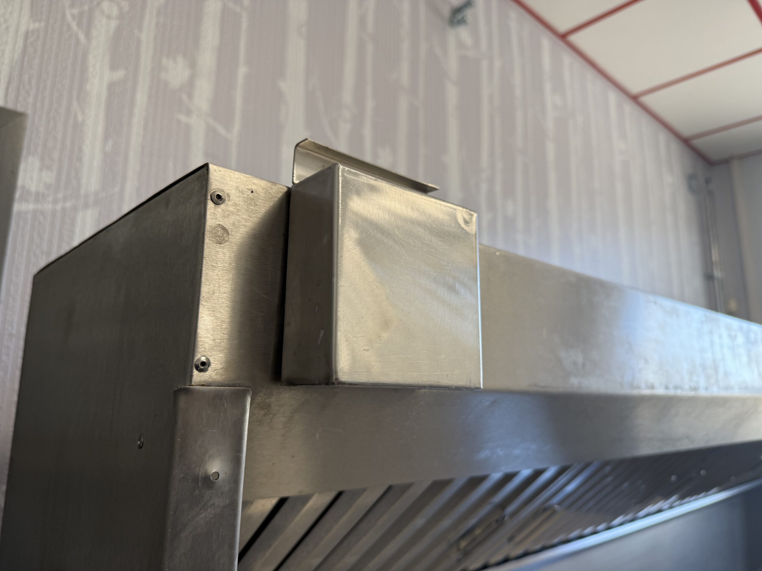 Müüa ilus ja korralik roostevaba suurköögi kubu. Kahesüsteemne – nii sisse kui välja puhe. 5 roostevaba rasva filtrit. Filtrid on kahe kihiga – esimene roostevaba, mis peab kinni suurema rasva ja osakesed, teine kiht alumiiniumist, et kätte saada ka see kõige peenem osake. Kahesüsteemne – läbi roostevaba filtrite väljatõmme, eest läbi restide sissepuhe. Taga väljatõmbe toru 2x31cm ja ees sissepuhe 3x24cm. Ees väike roostevaba rasvavann. Keskele võimalik paigaldada valgusti. Sobib kasutamiseks nii seinaääres kui ka keskpõrandal. Mõõdud 250x140x42cm.