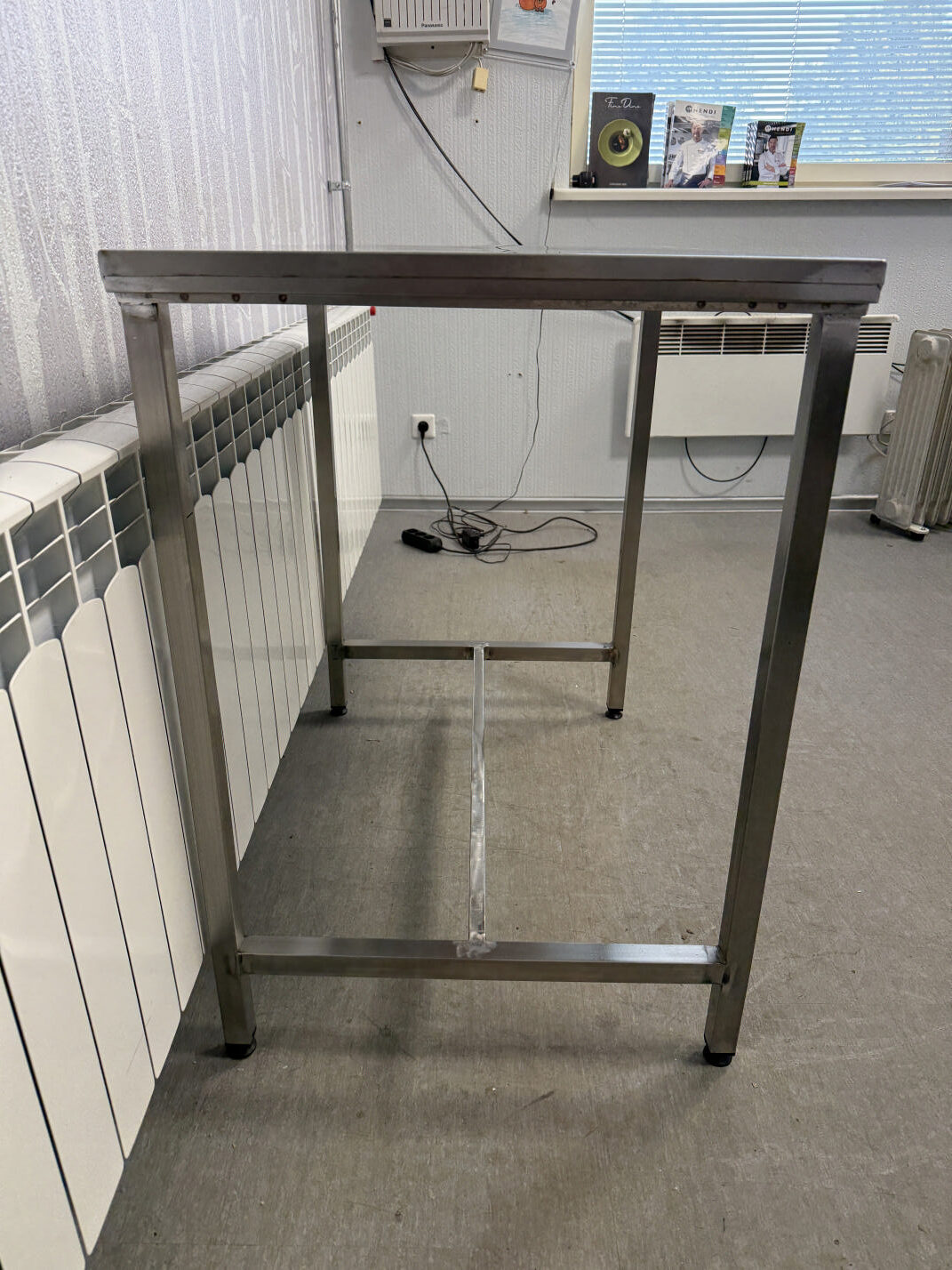 Müüa tugev ja vastupidav töölaud. Valmistatud roostevabast terasest. All reguleeritavad jalad.