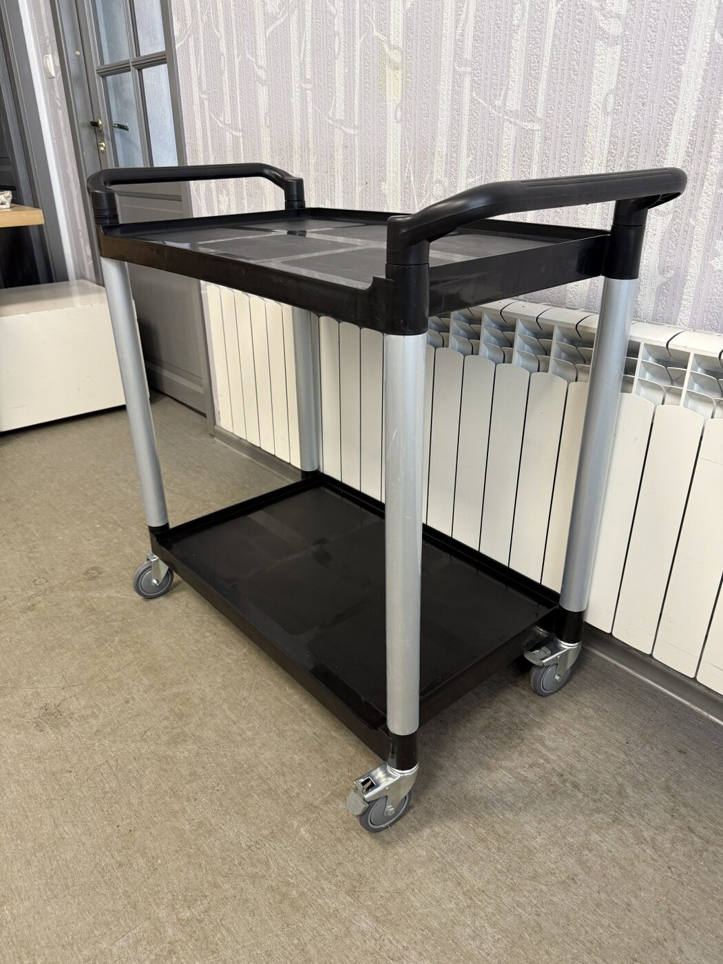 Müüa uus serveerimiskäru. Materjaliks alumiinium konstruktsioon ja plastist riiulid. Kärul on 2 vastupidavat tööpinda, mille kangevõime on 50kg ühe tööpinna kohta. Tööpindadel on kõrgendatud äär, et nõud ei saaks maha kukkuda. Nurgad on tugevdatud. All 4 pöörlevat ratast, millest 2 on piduritega. Tööpindade vahe on 64cm. Tööpindade mõõt 79x50cm, äär 2cm.