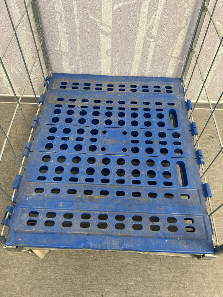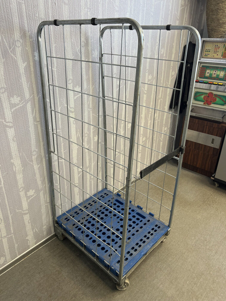 Müüa kasutatud võrekonteiner ratastel. Kahe küljega. Plastikust põhjaga. Ruumi kokku hoidmiseks võimalik lihtsalt kokku pakkida. Sobib nii kastide kui pikkade toodete ladustamiseks ja transpordiks. Materjaliks metall ja kaetud tsingiga. Ees kinnituskumm. Kaks pöörlevat ratast ja kaks fikseeritud. Kandejõud kuskil 400kg.