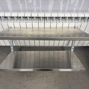 Korralik roostevaba seinariiul kahe riiuliga. Plaat tugevast roostevabast materjalist, hea konstruktsiooniga, kannatab raskust. Riiuli mõõt 91x41cm. Seinakinnituse pikkus 63cm, kanduri pikkus 40cm. Seinaliistuga on võimalik riiuli kõrgust seinas reguleerida.