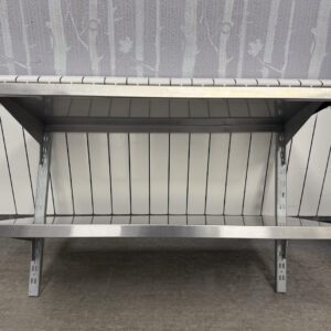 Uus roostevaba perforeeritud kuivatusriiul kahe riiuliga. Riiuli mõõt 60x36cm, kõik ääred alla. Seinakinnituse pikkus 60cm, kanduri pikkus 30cm. Riiulite kõrgus on reguleeritav. Plaat tugevast materjalist ja kannatab raskust. Perfo ava 1,5x3cm.